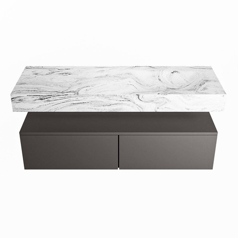 MONDIAZ ALAN - DLUX Badkamermeubelset - 130cm - onderkast - Dark grey - 2 lades - vrijhangende wastafel - wasbak rechts - 0 kraangaten - Glace