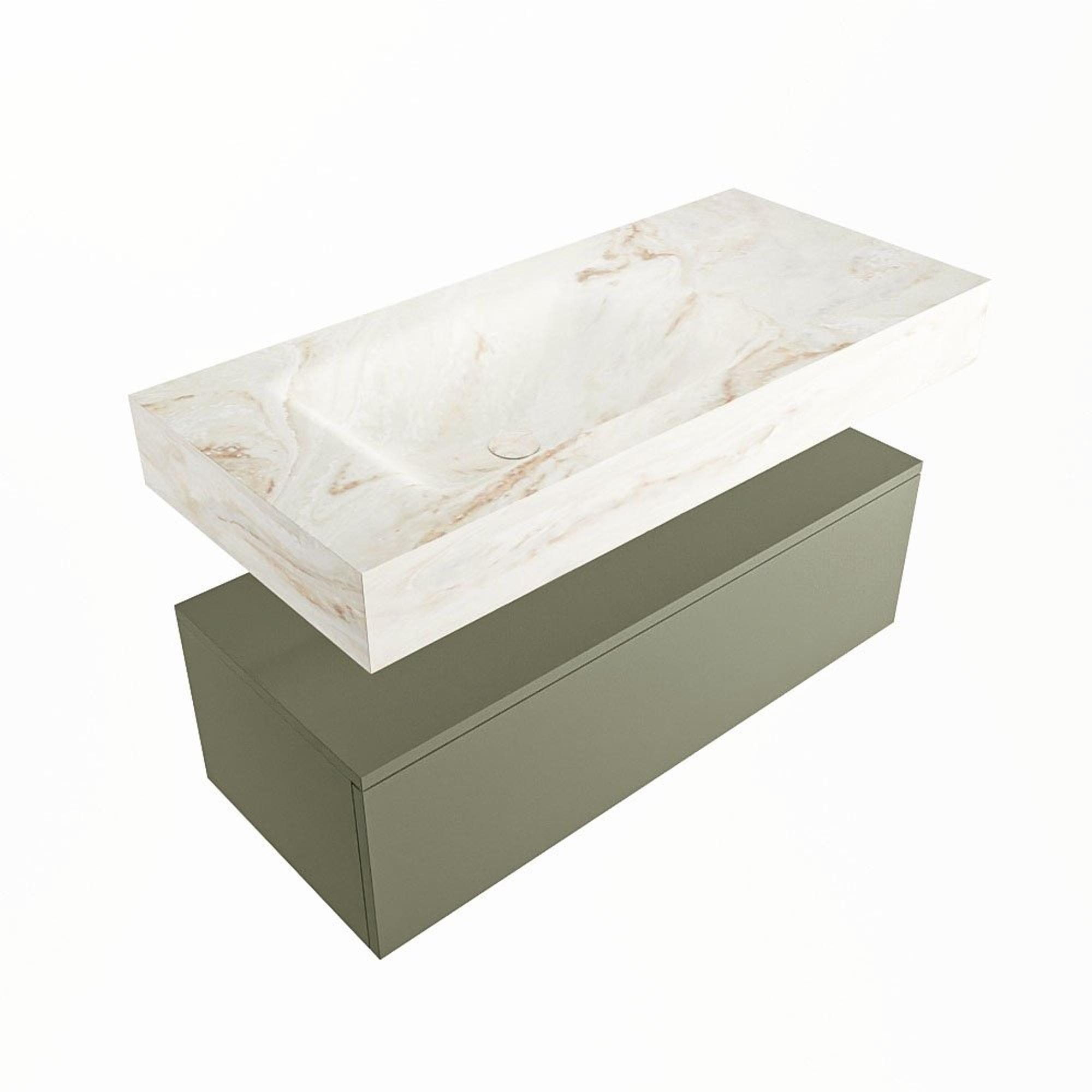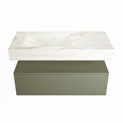MONDIAZ ALAN - DLUX Badkamermeubelset - 100cm - onderkast - Army - 1 lade - vrijhangende wastafel - wasbak links - 0 kraangaten - Frappe