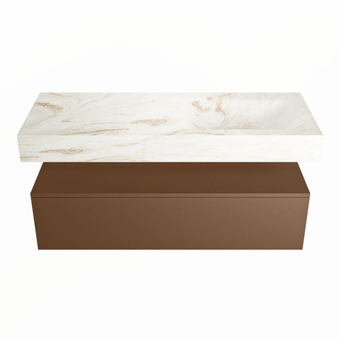 MONDIAZ ALAN - DLUX Badkamermeubelset - 120cm - onderkast - Rust - 1 lade - vrijhangende wastafel - wasbak rechts - 0 kraangaten - Frappe