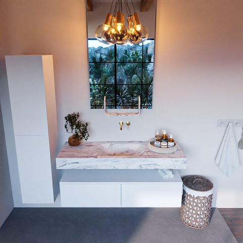Creëer een fantastische elegante uitstraling in uw badkamer met de badkamermeubel set Alan DLUX. De schitterende badmeubel set ALAN-DLUX bestaat uit een vrij hangende wastafel met zachte organische lijnen van CORIAN in gemarmerd Solid Surface gecombineerd met de ALAN badmeubel. De badkamermeubel set ALAN-DLUX is geschikt voor iedere badkamer of deze nu klein of groot is. Om uw badkamer helemaal compleet te maken zijn ook diverse accessoires in deze marmers verkrijgbaar.