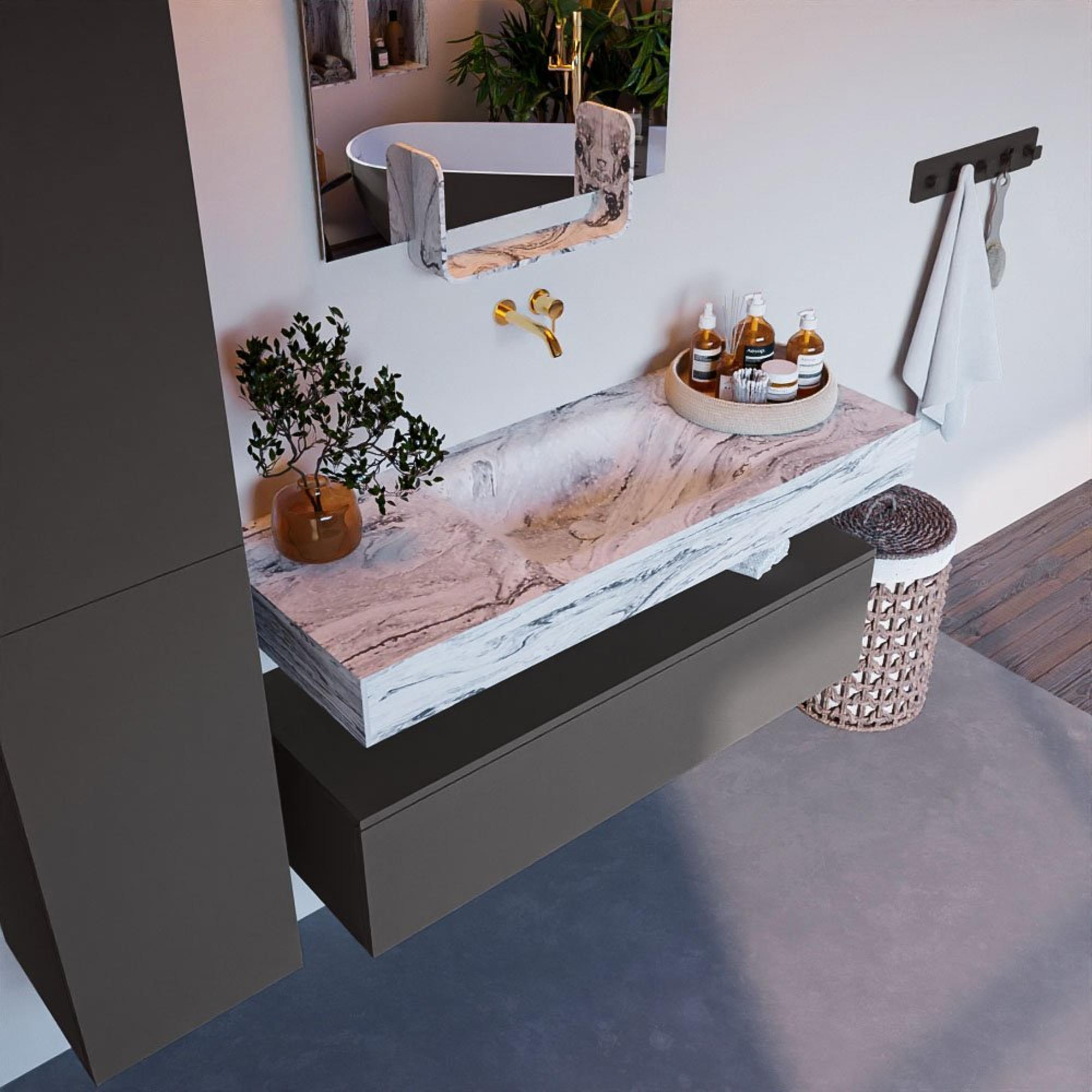Creëer een fantastische elegante uitstraling in uw badkamer met de badkamermeubel set Alan DLUX. De schitterende badmeubel set ALAN-DLUX bestaat uit een vrij hangende wastafel met zachte organische lijnen van CORIAN in gemarmerd Solid Surface gecombineerd met de ALAN badmeubel. De badkamermeubel set ALAN-DLUX is geschikt voor iedere badkamer of deze nu klein of groot is. Om uw badkamer helemaal compleet te maken zijn ook diverse accessoires in deze marmers verkrijgbaar.