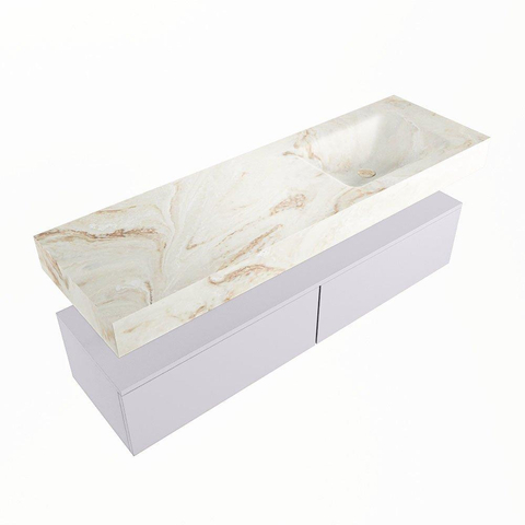 MONDIAZ ALAN - DLUX Badkamermeubelset - 150cm - onderkast - Cale - 2 lades - vrijhangende wastafel - wasbak rechts - 1 kraangat - Frappe