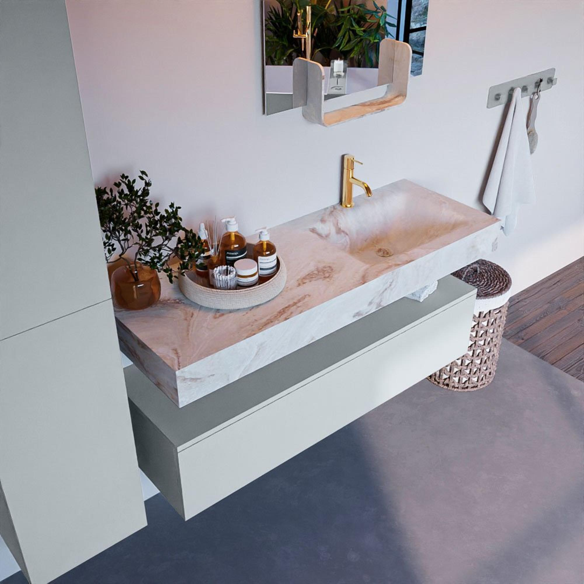 MONDIAZ ALAN - DLUX Badkamermeubelset - 130cm - onderkast - Clay - 1 lade - vrijhangende wastafel - wasbak rechts - 1 kraangat - Frappe
