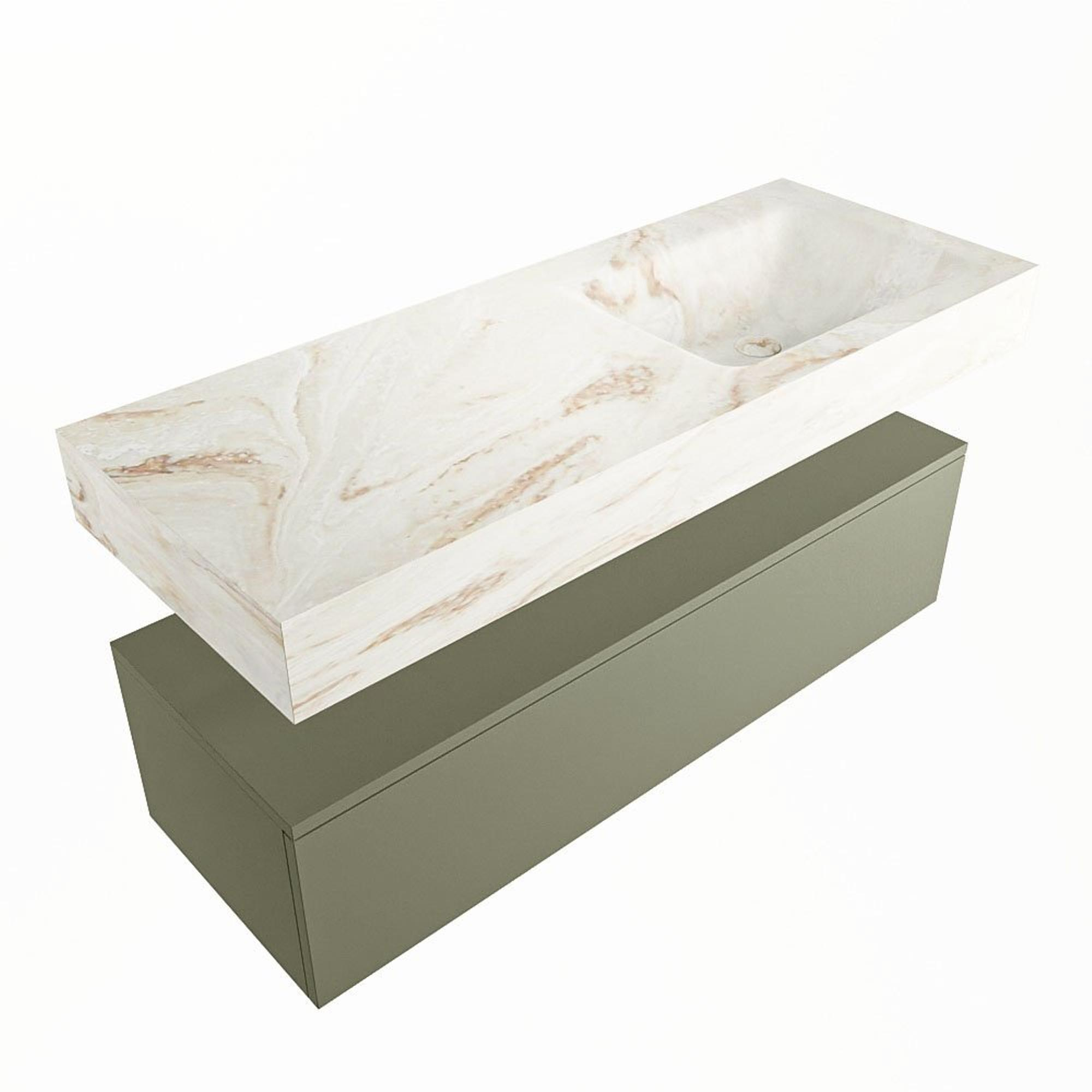MONDIAZ ALAN - DLUX Badkamermeubelset - 120cm - onderkast - Army - 1 lade - vrijhangende wastafel - wasbak rechts - 0 kraangaten - Frappe