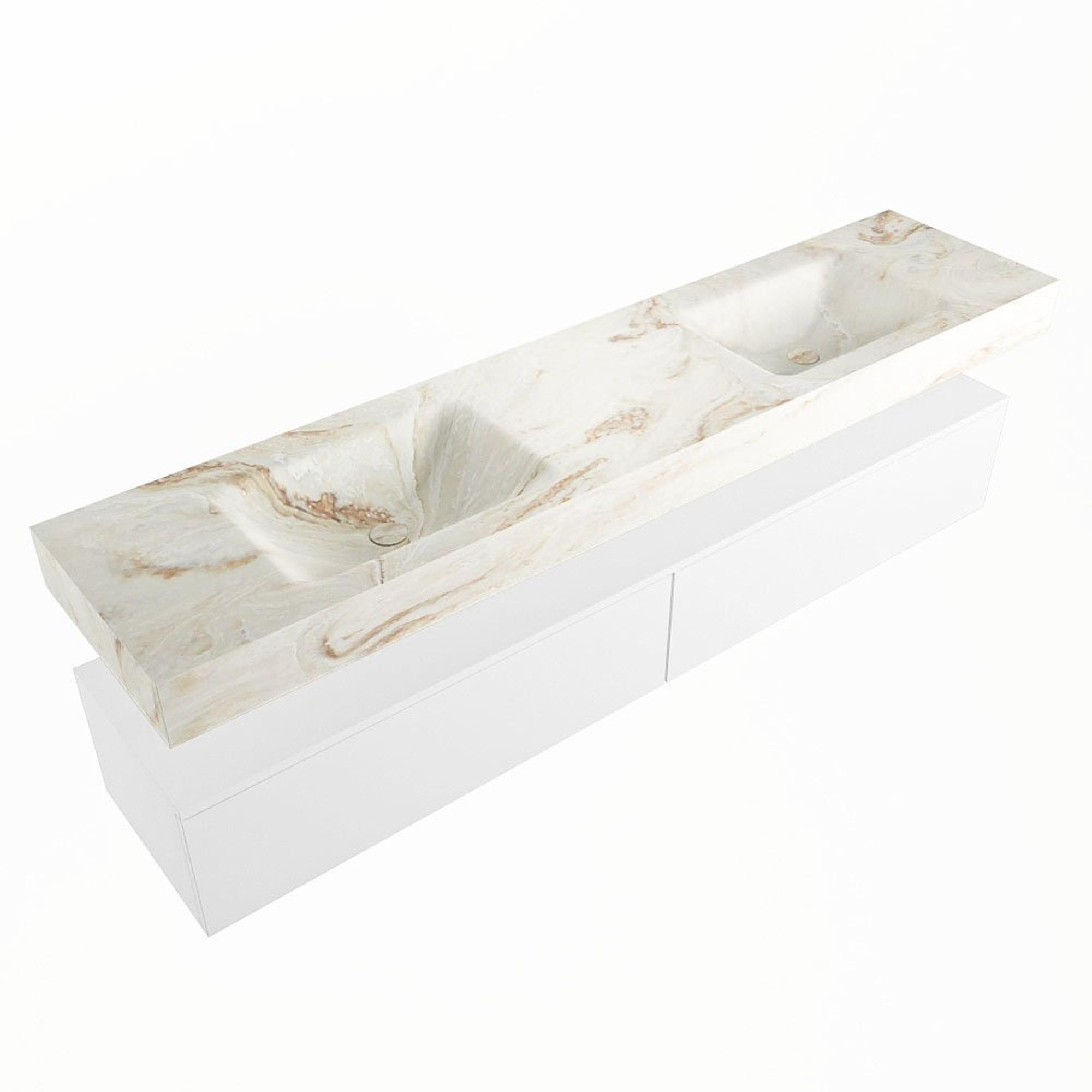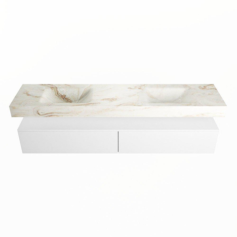 MONDIAZ ALAN - DLUX Badkamermeubelset - 200cm - onderkast - Talc - 2 lades - vrijhangende wastafel - 2 wasbakken - 2 kraangaten - Frappe