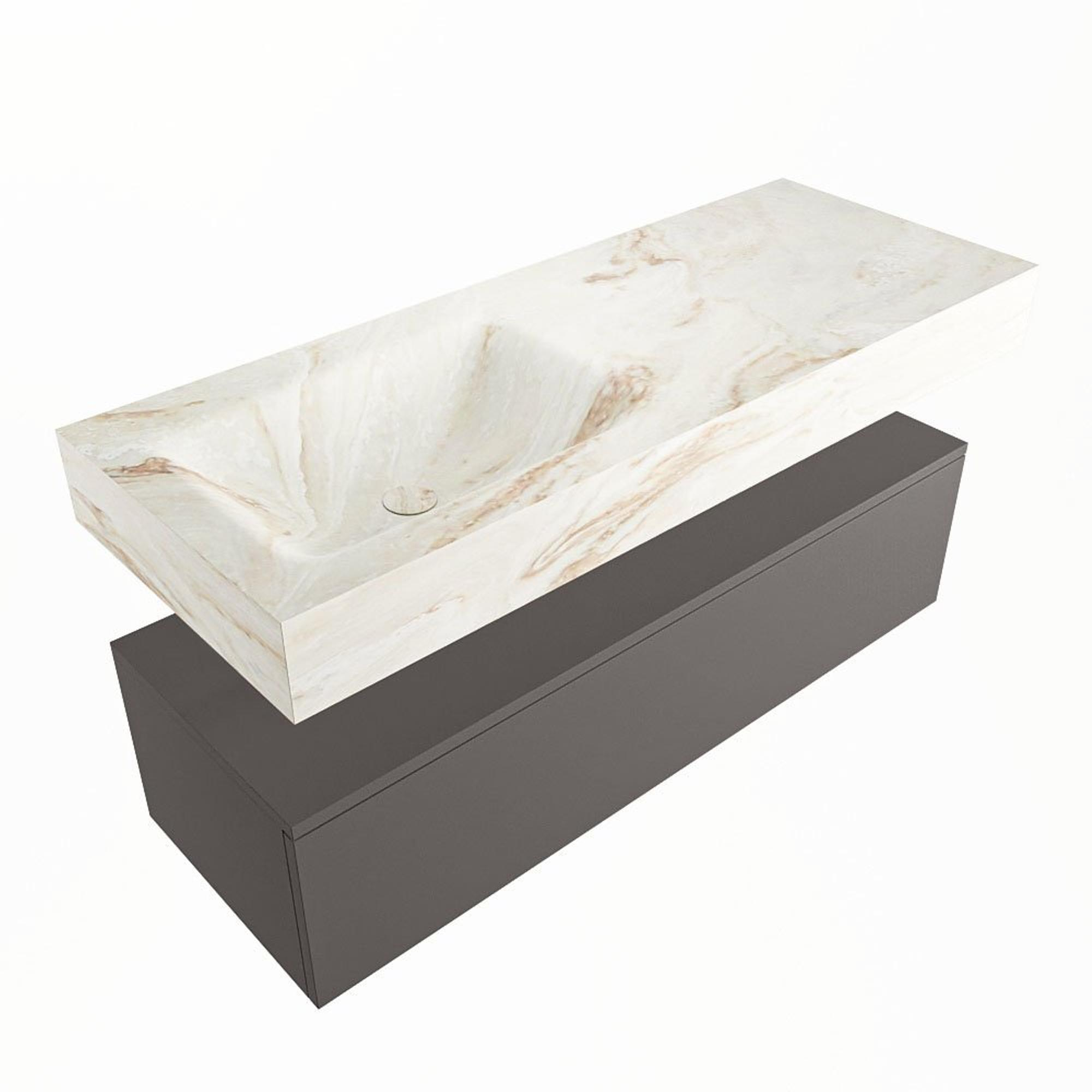 MONDIAZ ALAN - DLUX Badkamermeubelset - 120cm - onderkast - Dark grey - 1 lade - vrijhangende wastafel - wasbak links - 1 kraangat - Frappe
