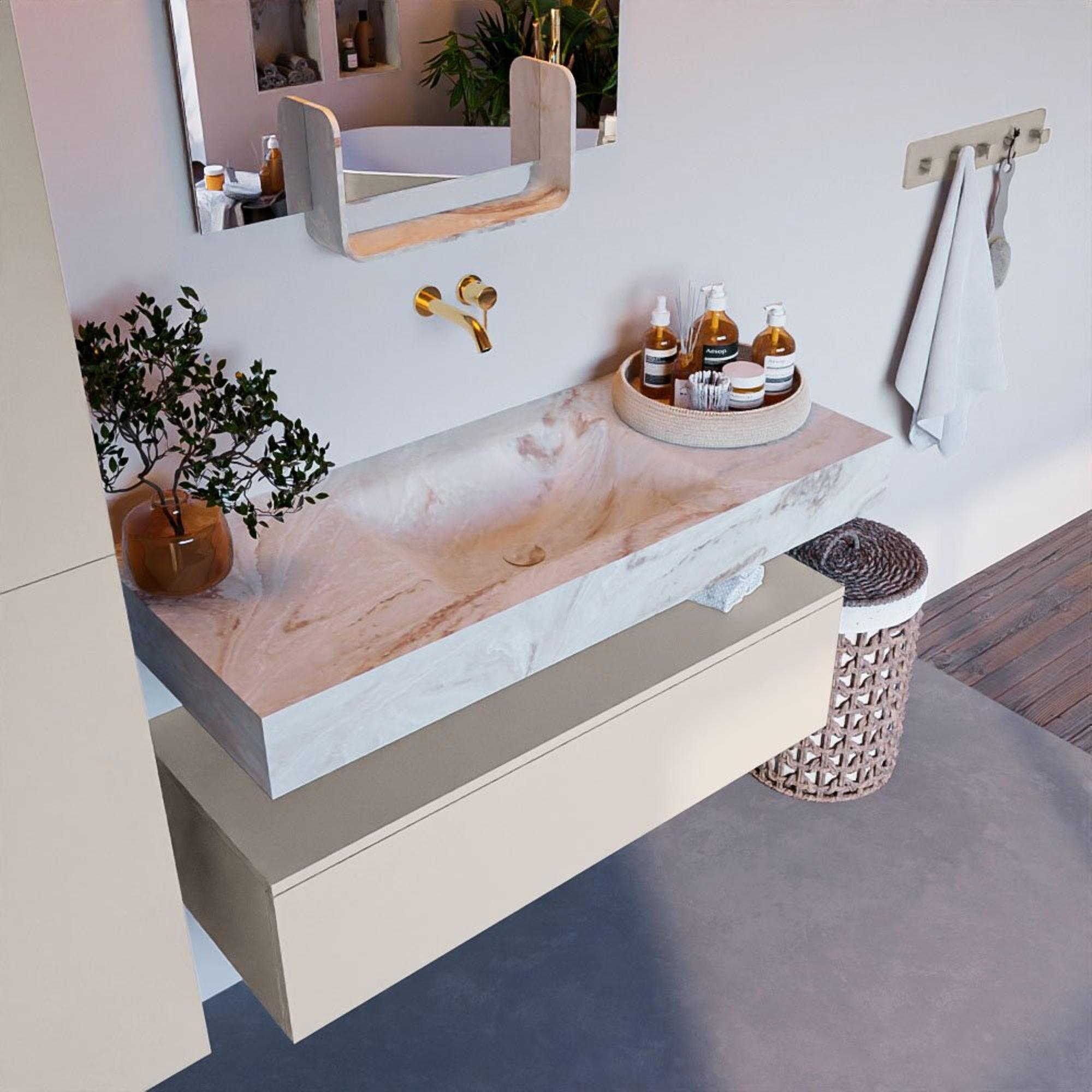 MONDIAZ ALAN - DLUX Badkamermeubelset - 110cm - onderkast - Linen - 1 lade - vrijhangende wastafel - wasbak midden - 0 kraangaten - Frappe