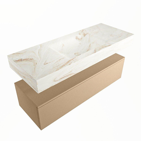 MONDIAZ ALAN - DLUX Badkamermeubelset - 120cm - onderkast - Oro - 1 lade - vrijhangende wastafel - wasbak midden - 0 kraangaten - Frappe