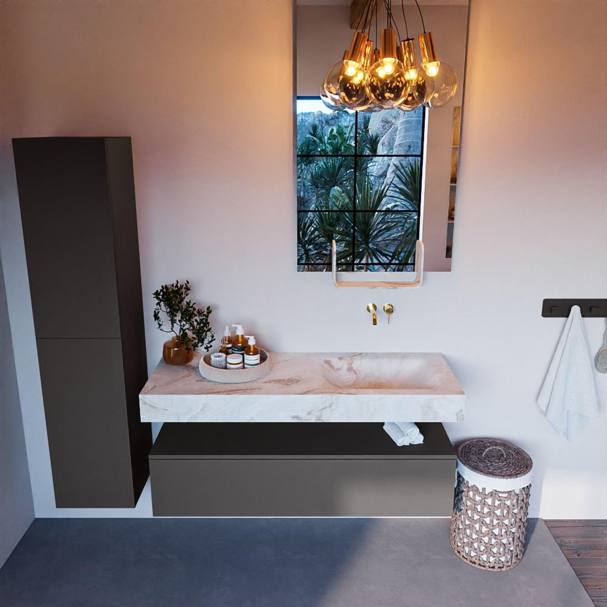 Creëer een fantastische elegante uitstraling in uw badkamer met de badkamermeubel set Alan DLUX. De schitterende badmeubel set ALAN-DLUX bestaat uit een vrij hangende wastafel met zachte organische lijnen van CORIAN in gemarmerd Solid Surface gecombineerd met de ALAN badmeubel. De badkamermeubel set ALAN-DLUX is geschikt voor iedere badkamer of deze nu klein of groot is. Om uw badkamer helemaal compleet te maken zijn ook diverse accessoires in deze marmers verkrijgbaar.