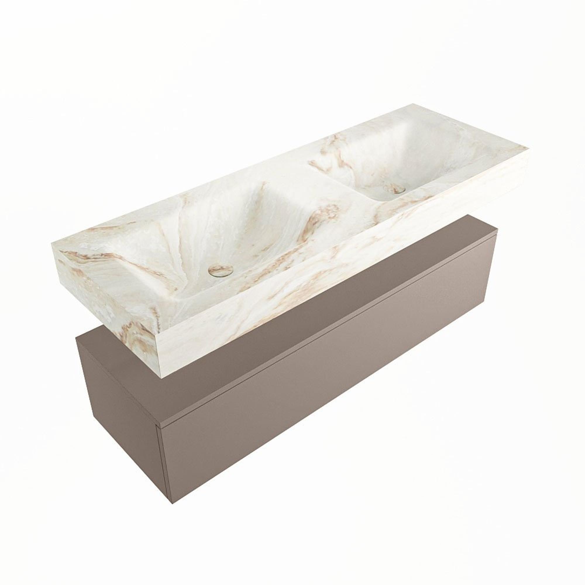 MONDIAZ ALAN - DLUX Badkamermeubelset - 130cm - onderkast - Smoke - 1 lade - vrijhangende wastafel - 2 wasbakken - 0 kraangaten - Frappe
