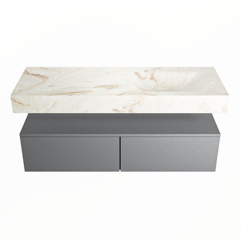 MONDIAZ ALAN - DLUX Badkamermeubelset - 130cm - onderkast - Plata - 2 lades - vrijhangende wastafel - wasbak rechts - 1 kraangat - Frappe