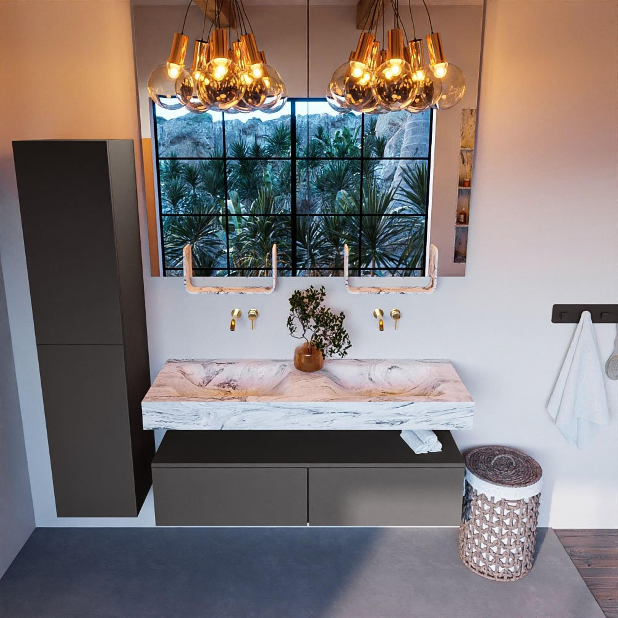 Creëer een fantastische elegante uitstraling in uw badkamer met de badkamermeubel set Alan DLUX. De schitterende badmeubel set ALAN-DLUX bestaat uit een vrij hangende wastafel met zachte organische lijnen van CORIAN in gemarmerd Solid Surface gecombineerd met de ALAN badmeubel. De badkamermeubel set ALAN-DLUX is geschikt voor iedere badkamer of deze nu klein of groot is. Om uw badkamer helemaal compleet te maken zijn ook diverse accessoires in deze marmers verkrijgbaar.