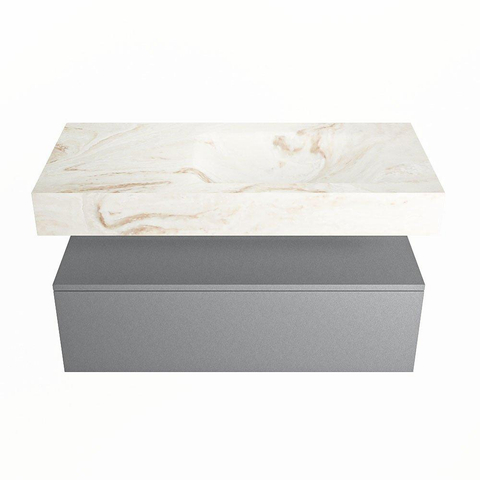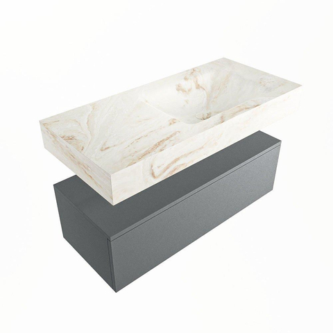 MONDIAZ ALAN - DLUX Badkamermeubelset - 100cm - onderkast - Plata - 1 lade - vrijhangende wastafel - wasbak rechts - 1 kraangat - Frappe