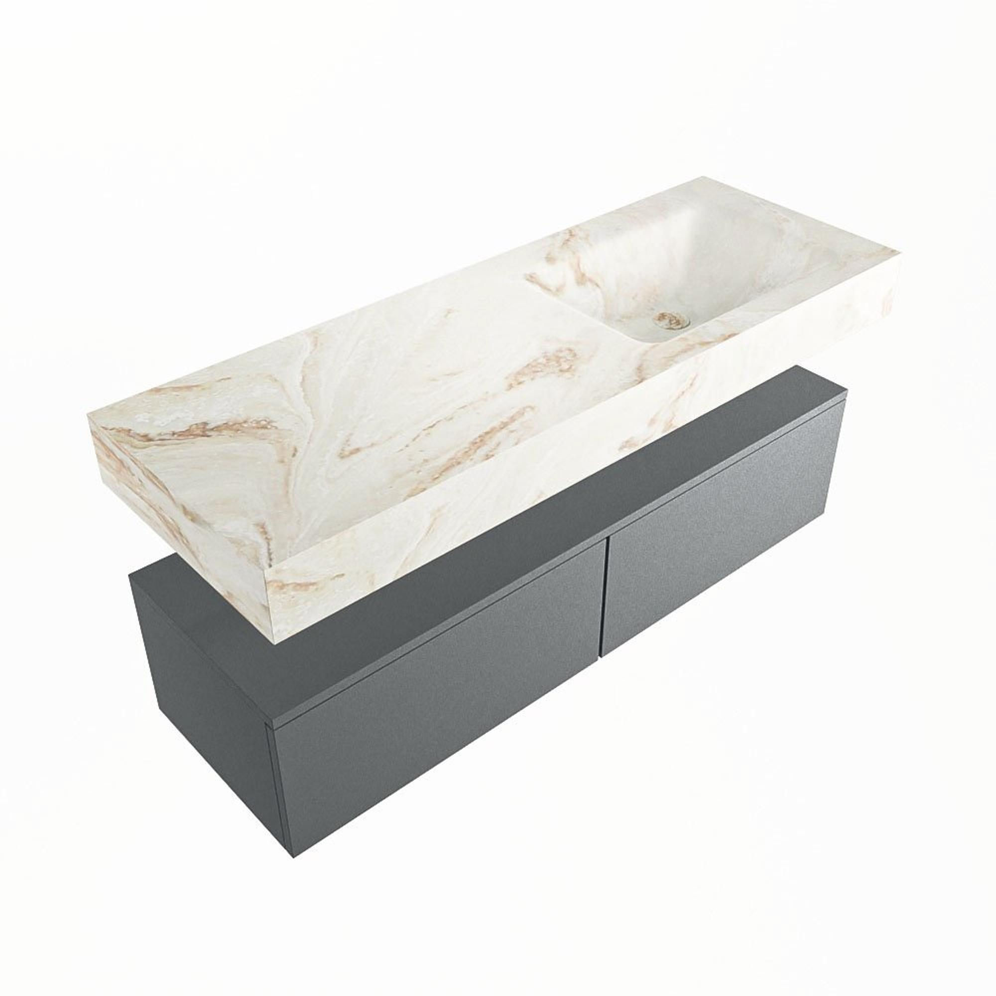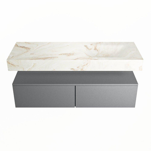 MONDIAZ ALAN - DLUX Badkamermeubelset - 130cm - onderkast - Plata - 2 lades - vrijhangende wastafel - wasbak rechts - 0 kraangaten - Frappe
