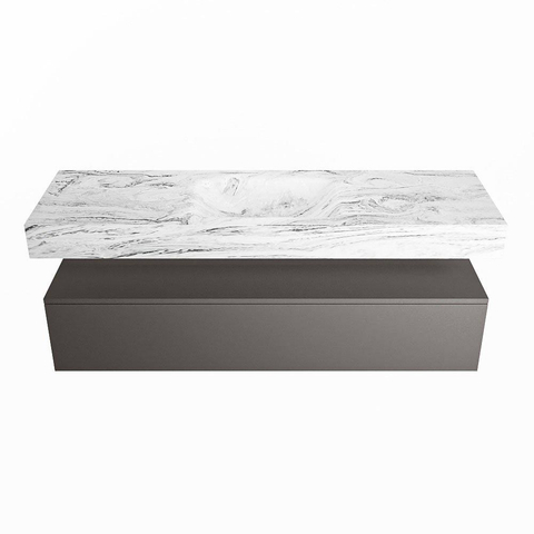 MONDIAZ ALAN - DLUX Badkamermeubelset - 150cm - onderkast - Dark grey - 1 lade - vrijhangende wastafel - wasbak midden - 1 kraangat - Glace