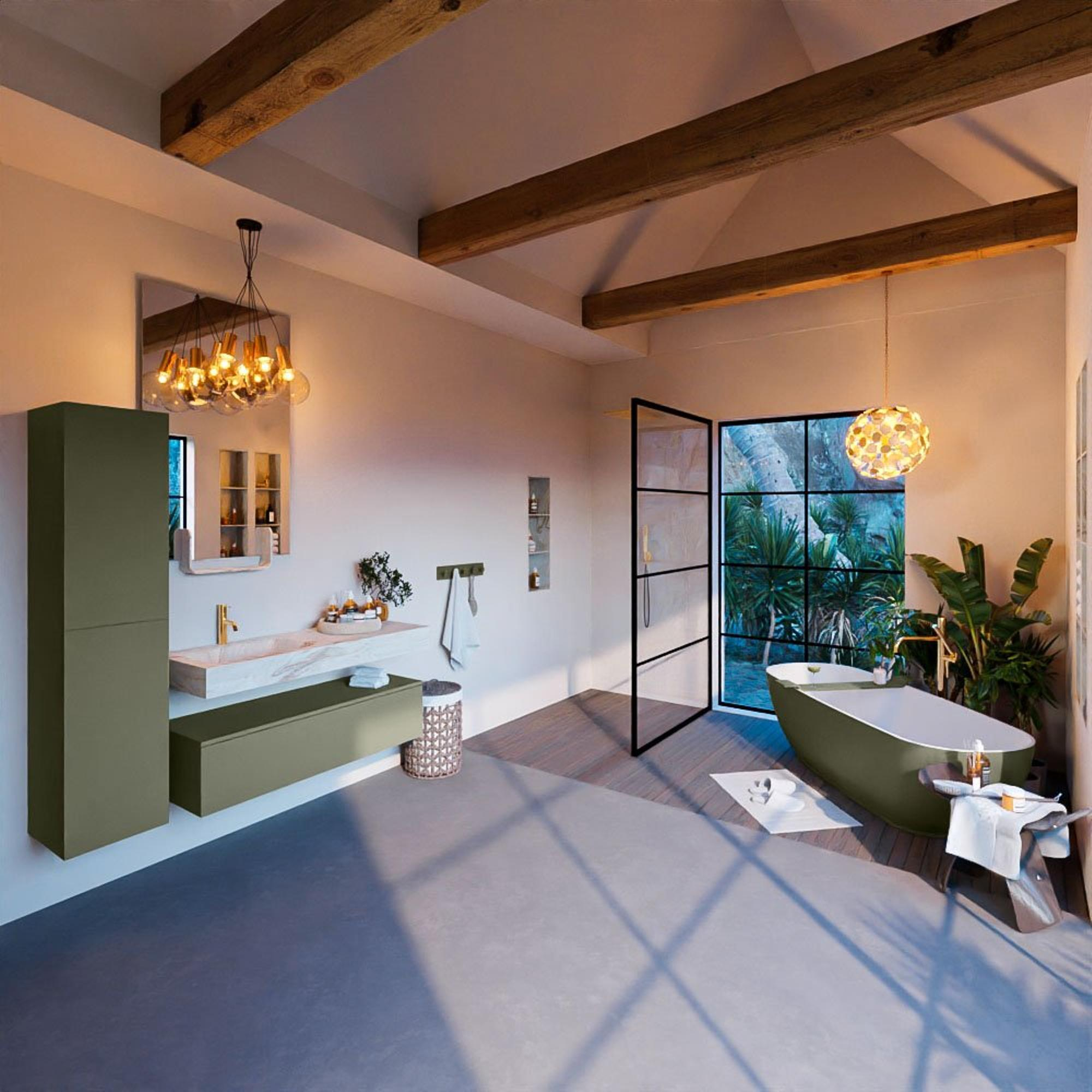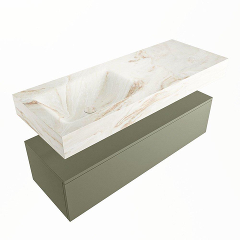 MONDIAZ ALAN - DLUX Badkamermeubelset - 120cm - onderkast - Army - 1 lade - vrijhangende wastafel - wasbak links - 1 kraangat - Frappe