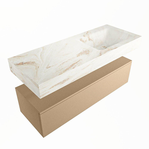 MONDIAZ ALAN - DLUX Badkamermeubelset - 120cm - onderkast - Oro - 1 lade - vrijhangende wastafel - wasbak rechts - 1 kraangat - Frappe