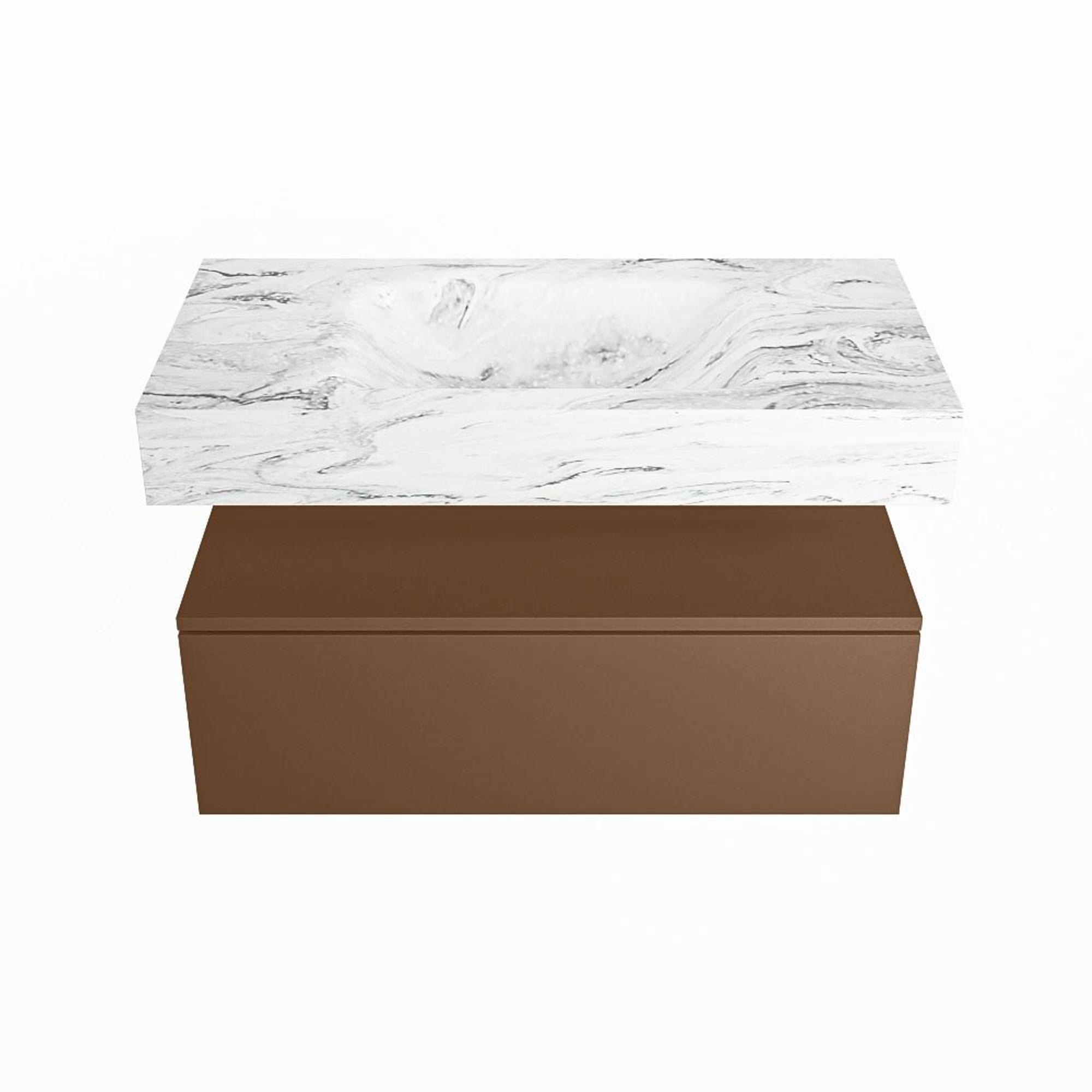 MONDIAZ ALAN - DLUX Badkamermeubelset - 90cm - onderkast - Rust - 1 lade - vrijhangende wastafel - wasbak midden - 0 kraangaten - Glace