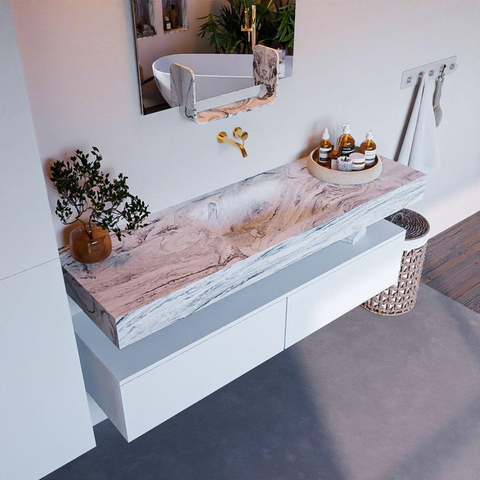 Creëer een fantastische elegante uitstraling in uw badkamer met de badkamermeubel set Alan DLUX. De schitterende badmeubel set ALAN-DLUX bestaat uit een vrij hangende wastafel met zachte organische lijnen van CORIAN in gemarmerd Solid Surface gecombineerd met de ALAN badmeubel. De badkamermeubel set ALAN-DLUX is geschikt voor iedere badkamer of deze nu klein of groot is. Om uw badkamer helemaal compleet te maken zijn ook diverse accessoires in deze marmers verkrijgbaar.