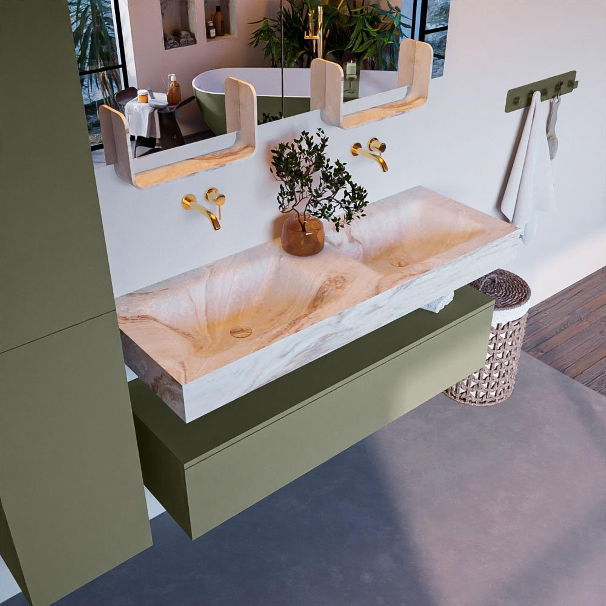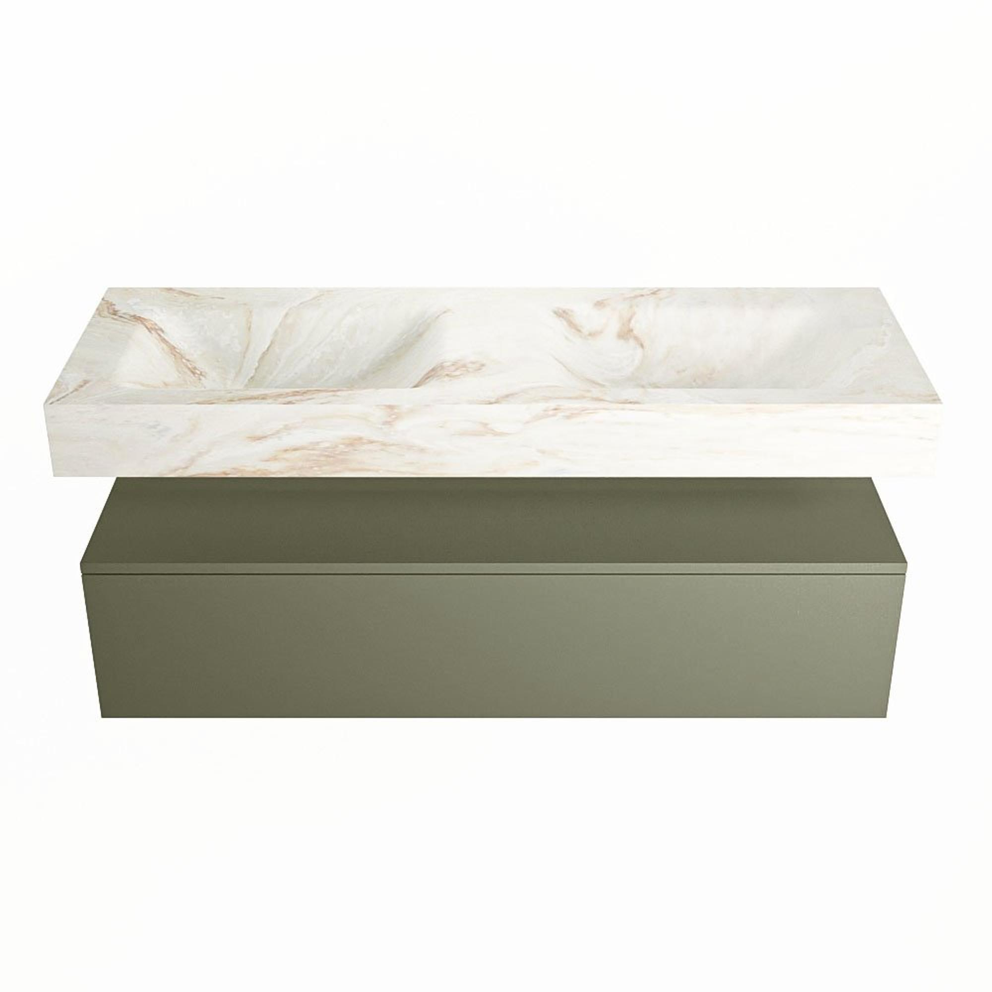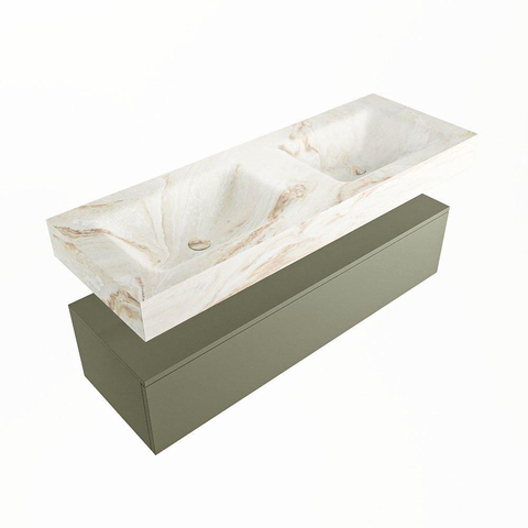 MONDIAZ ALAN - DLUX Badkamermeubelset - 130cm - onderkast - Army - 1 lade - vrijhangende wastafel - 2 wasbakken - 0 kraangaten - Frappe