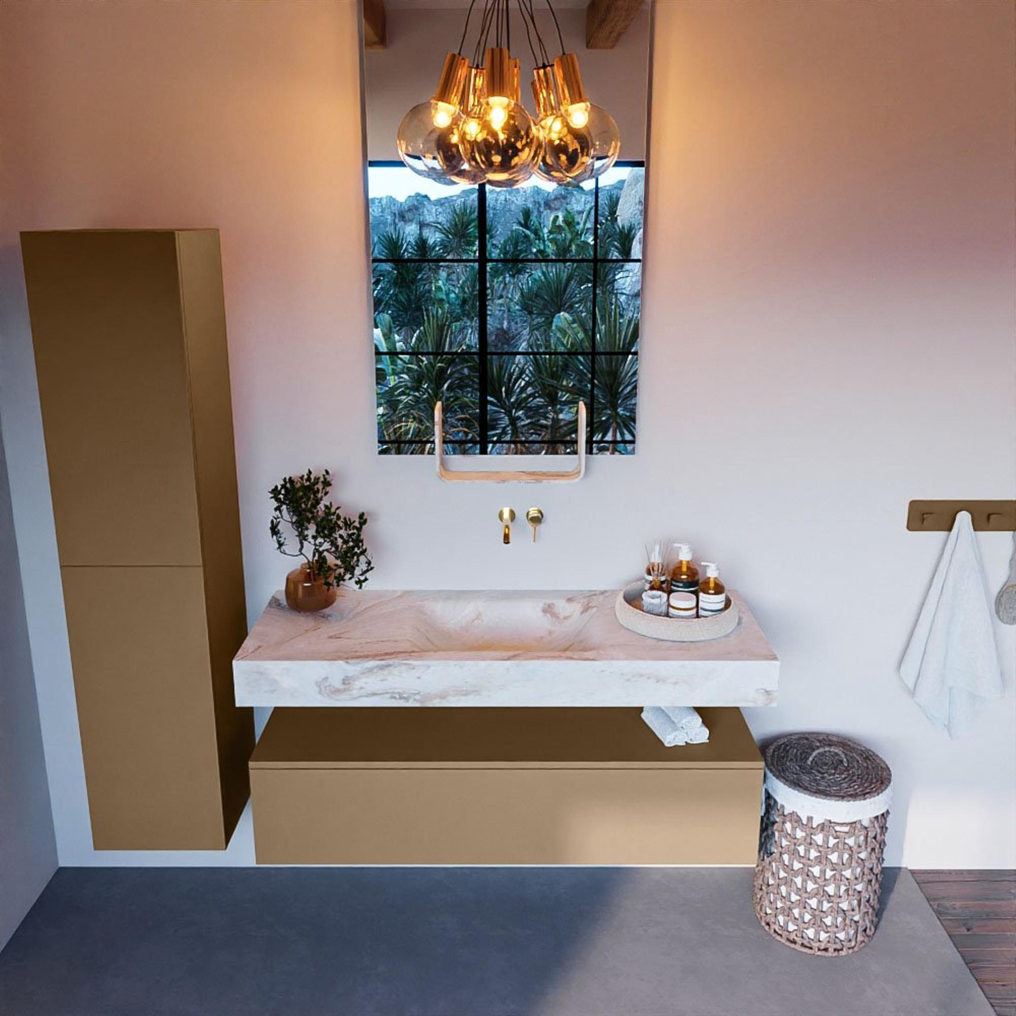 MONDIAZ ALAN - DLUX Badkamermeubelset - 130cm - onderkast - Oro - 1 lade - vrijhangende wastafel - wasbak midden - 0 kraangaten - Frappe
