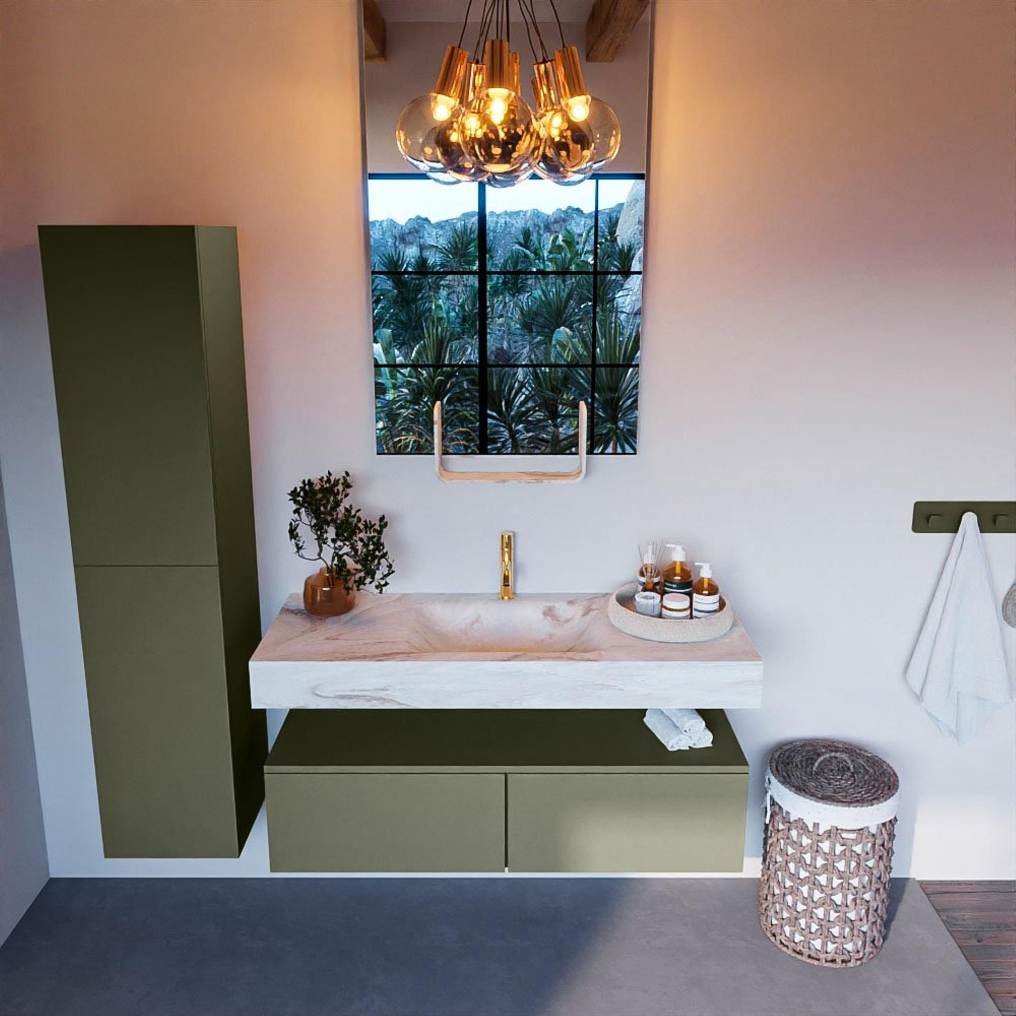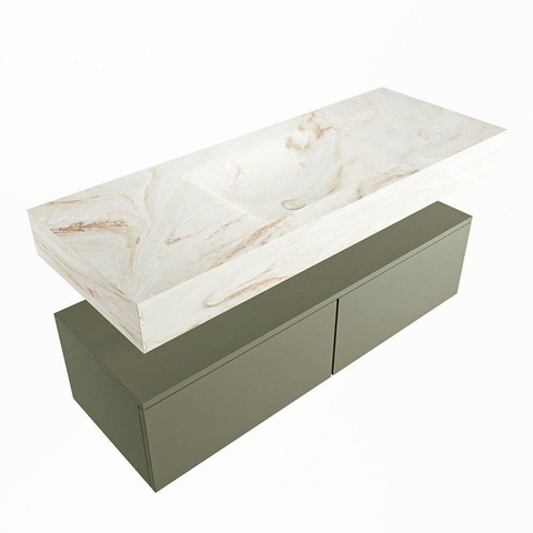 MONDIAZ ALAN - DLUX Badkamermeubelset - 120cm - onderkast - Army - 2 lades - vrijhangende wastafel - wasbak midden - 1 kraangat - Frappe