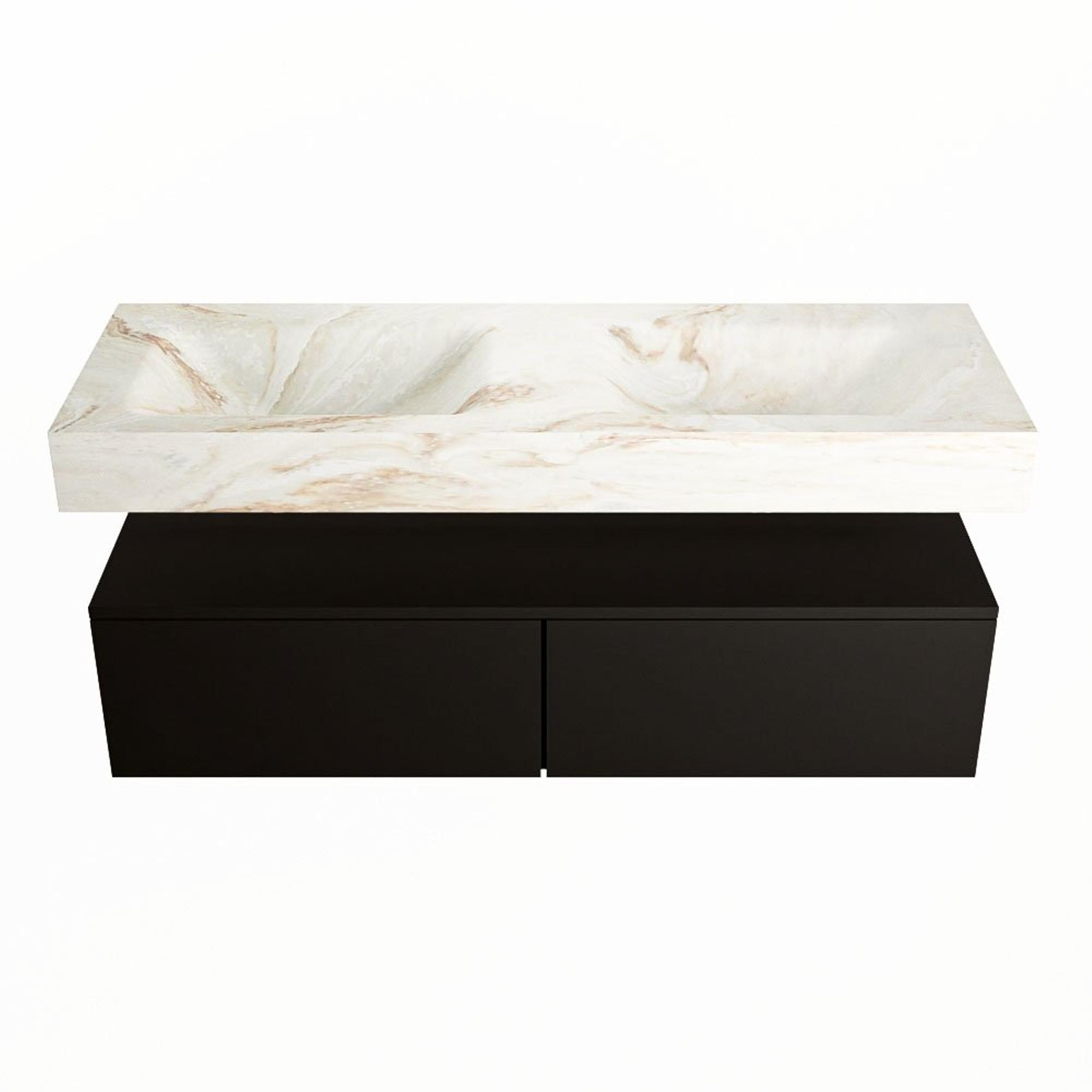 MONDIAZ ALAN - DLUX Badkamermeubelset - 130cm - onderkast - Urban - 2 lades - vrijhangende wastafel - 2 wasbakken - 2 kraangaten - Frappe