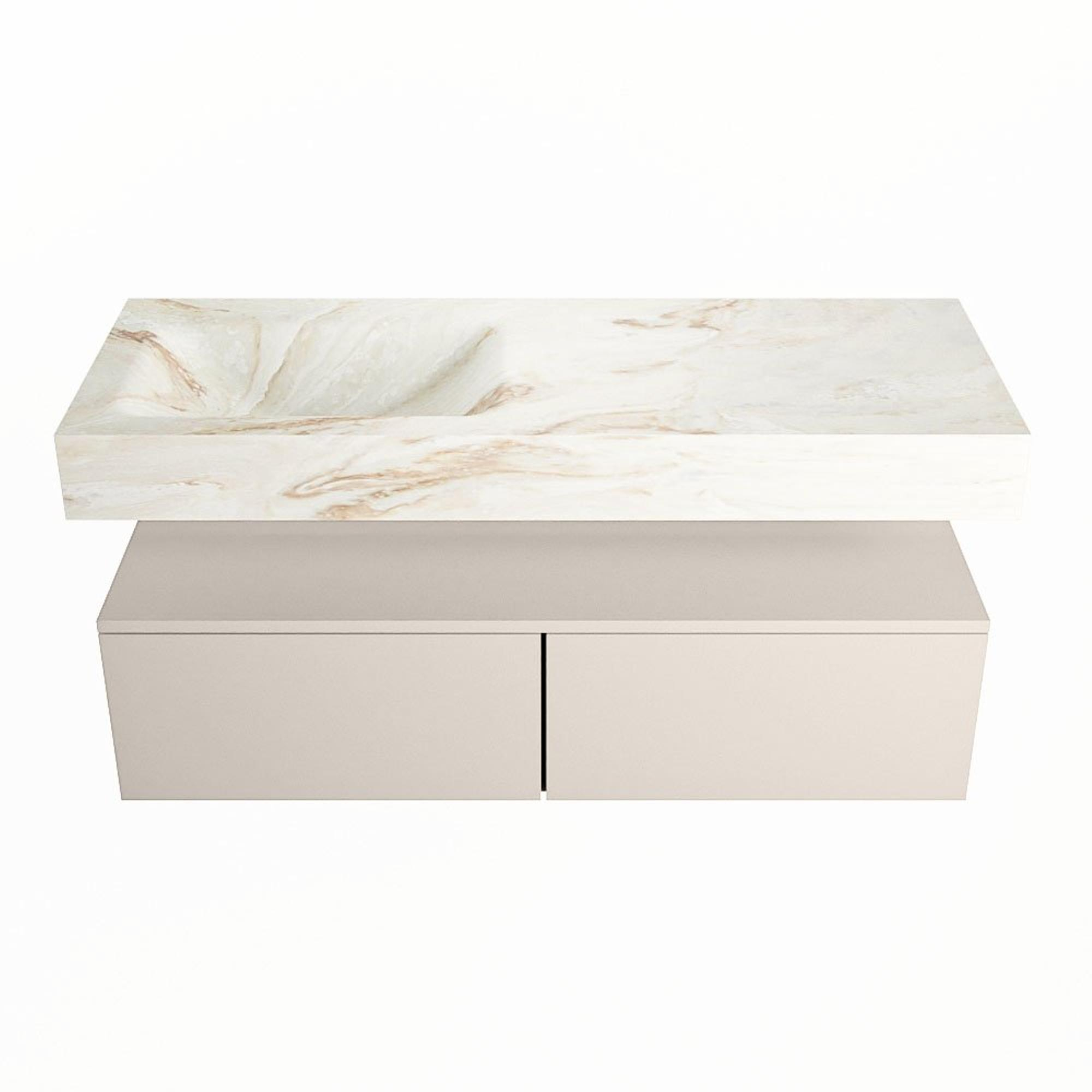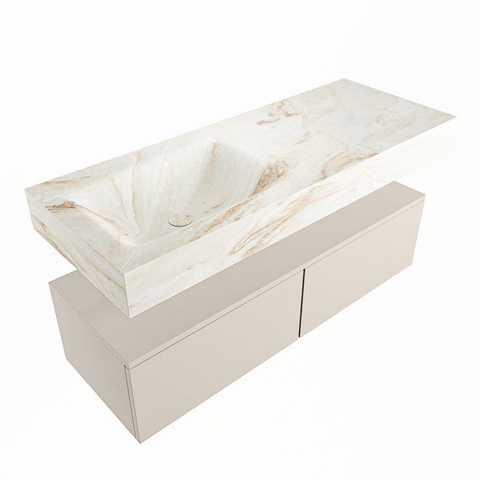 MONDIAZ ALAN - DLUX Badkamermeubelset - 120cm - onderkast - Linen - 2 lades - vrijhangende wastafel - wasbak links - 0 kraangaten - Frappe