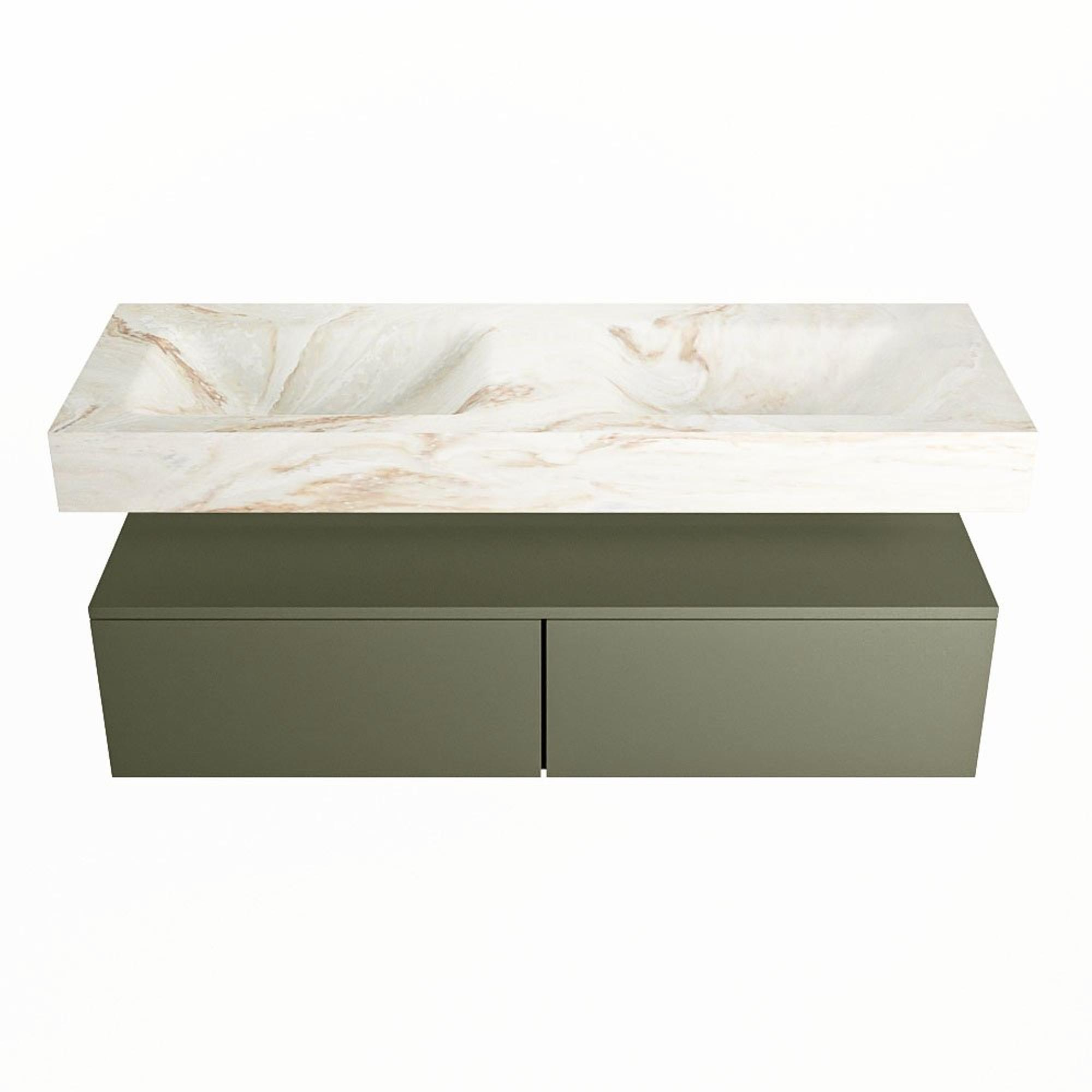 MONDIAZ ALAN - DLUX Badkamermeubelset - 130cm - onderkast - Army - 2 lades - vrijhangende wastafel - 2 wasbakken - 0 kraangaten - Frappe