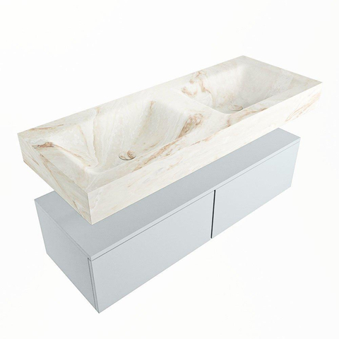 MONDIAZ ALAN - DLUX Badkamermeubelset - 120cm - onderkast - Clay - 2 lades - vrijhangende wastafel - 2 wasbakken - 2 kraangaten - Frappe