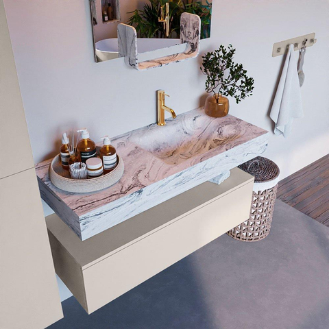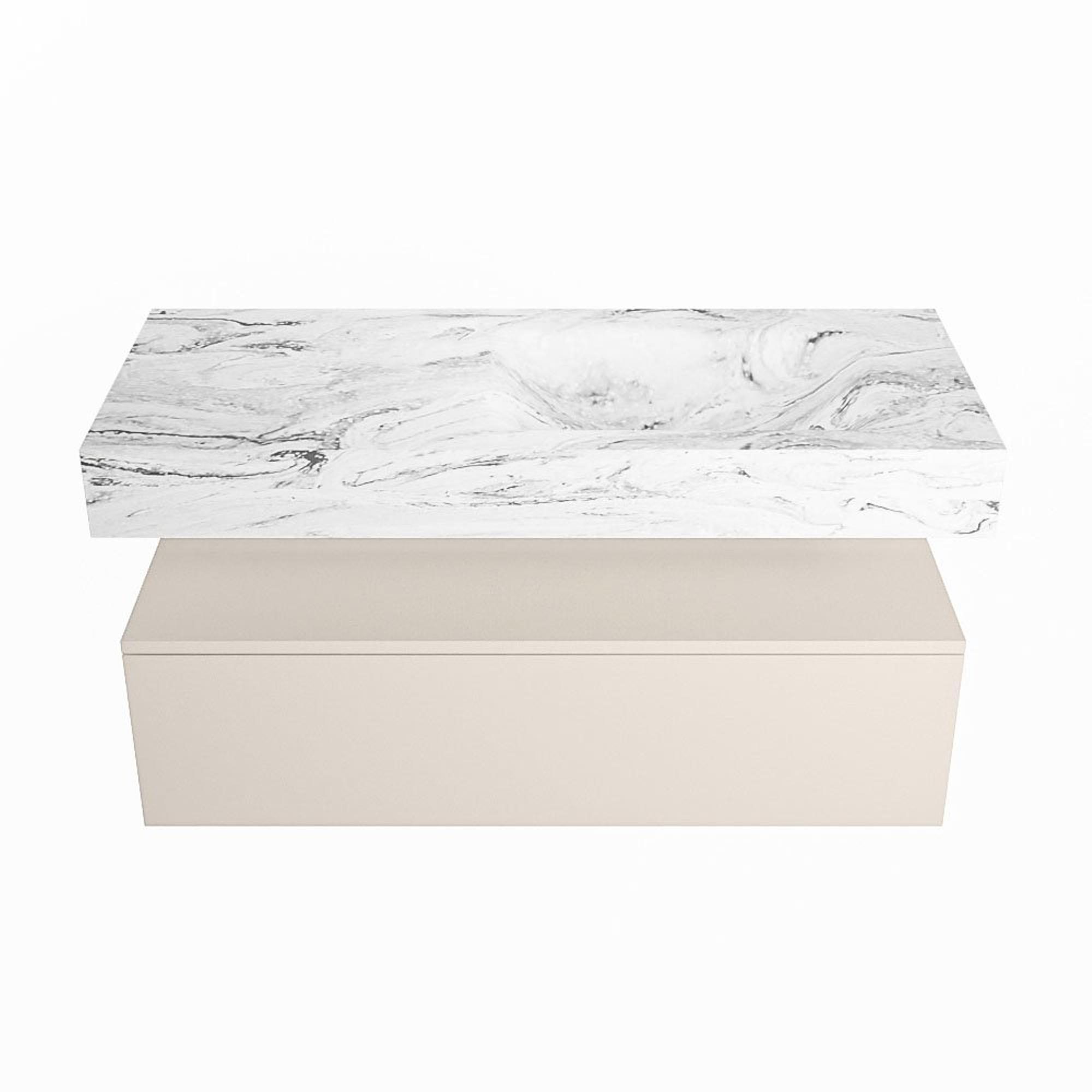 MONDIAZ ALAN - DLUX Badkamermeubelset - 110cm - onderkast - Linen - 1 lade - vrijhangende wastafel - wasbak rechts - 1 kraangat - Glace