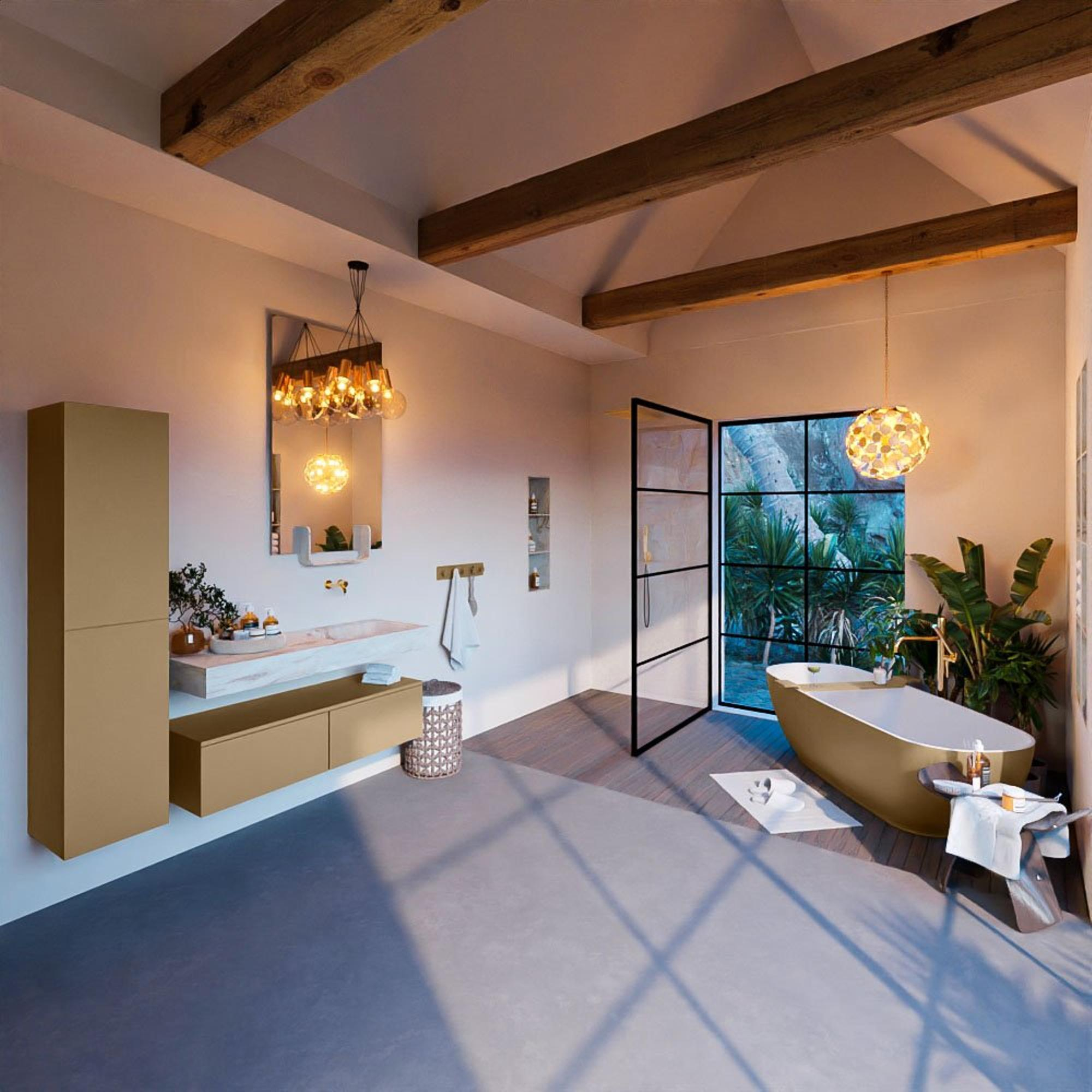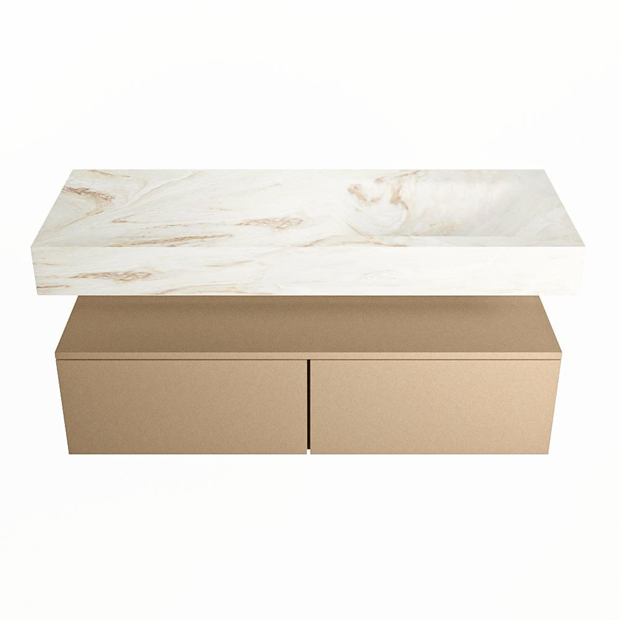 MONDIAZ ALAN - DLUX Badkamermeubelset - 120cm - onderkast - Oro - 2 lades - vrijhangende wastafel - wasbak rechts - 0 kraangaten - Frappe