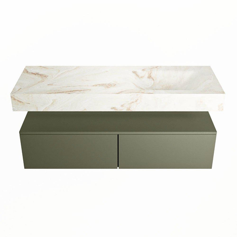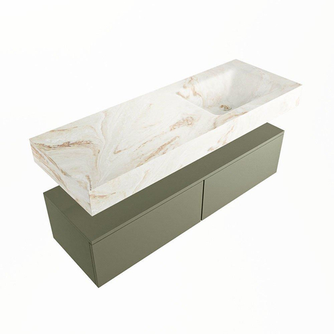 MONDIAZ ALAN - DLUX Badkamermeubelset - 130cm - onderkast - Army - 2 lades - vrijhangende wastafel - wasbak rechts - 1 kraangat - Frappe
