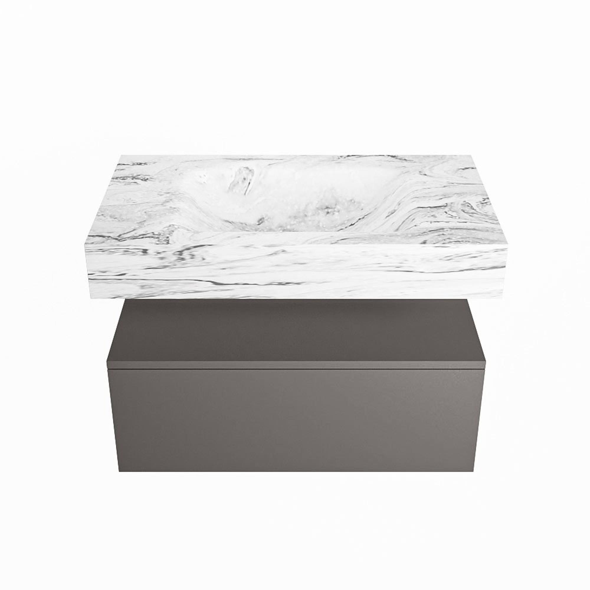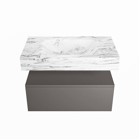 MONDIAZ ALAN - DLUX Badkamermeubelset - 80cm - onderkast - Dark grey - 1 lade - vrijhangende wastafel - wasbak midden - 0 kraangaten - Glace