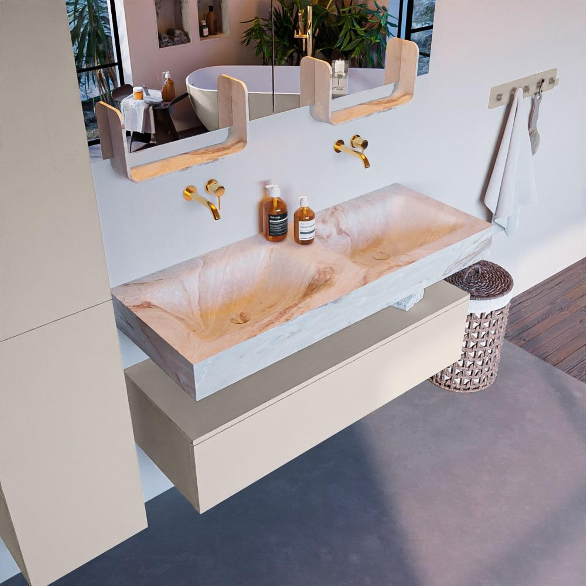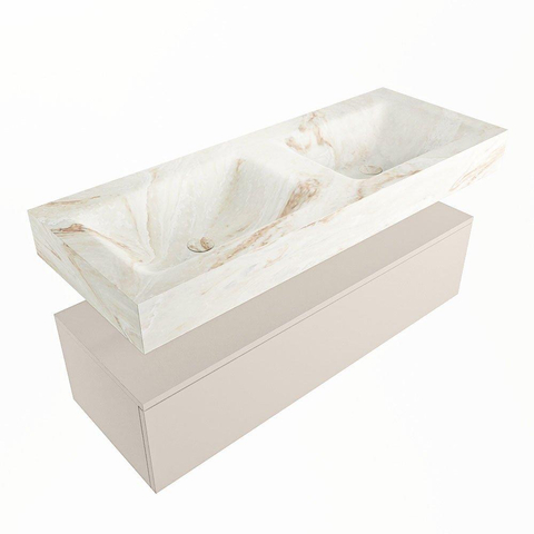 MONDIAZ ALAN - DLUX Badkamermeubelset - 120cm - onderkast - Linen - 1 lade - vrijhangende wastafel - 2 wasbakken - 0 kraangaten - Frappe