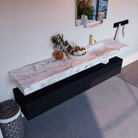 Creëer een fantastische elegante uitstraling in uw badkamer met de badkamermeubel set Alan DLUX. De schitterende badmeubel set ALAN-DLUX bestaat uit een vrij hangende wastafel met zachte organische lijnen van CORIAN in gemarmerd Solid Surface gecombineerd met de ALAN badmeubel. De badkamermeubel set ALAN-DLUX is geschikt voor iedere badkamer of deze nu klein of groot is. Om uw badkamer helemaal compleet te maken zijn ook diverse accessoires in deze marmers verkrijgbaar.