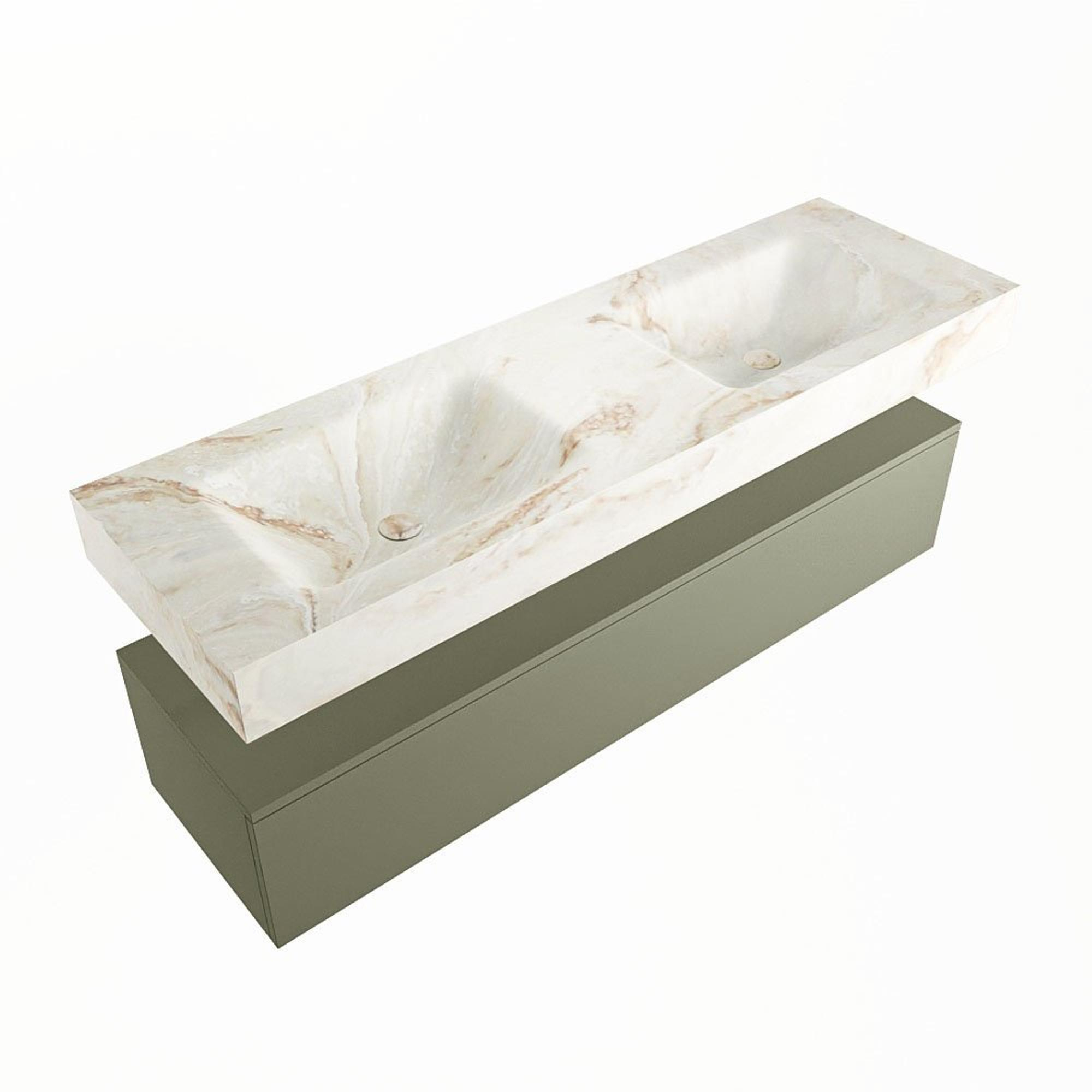 MONDIAZ ALAN - DLUX Badkamermeubelset - 150cm - onderkast - Army - 1 lade - vrijhangende wastafel - 2 wasbakken - 2 kraangaten - Frappe