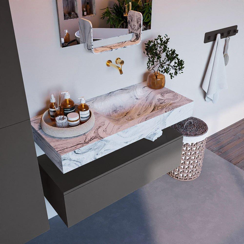Creëer een fantastische elegante uitstraling in uw badkamer met de badkamermeubel set Alan DLUX. De schitterende badmeubel set ALAN-DLUX bestaat uit een vrij hangende wastafel met zachte organische lijnen van CORIAN in gemarmerd Solid Surface gecombineerd met de ALAN badmeubel. De badkamermeubel set ALAN-DLUX is geschikt voor iedere badkamer of deze nu klein of groot is. Om uw badkamer helemaal compleet te maken zijn ook diverse accessoires in deze marmers verkrijgbaar.