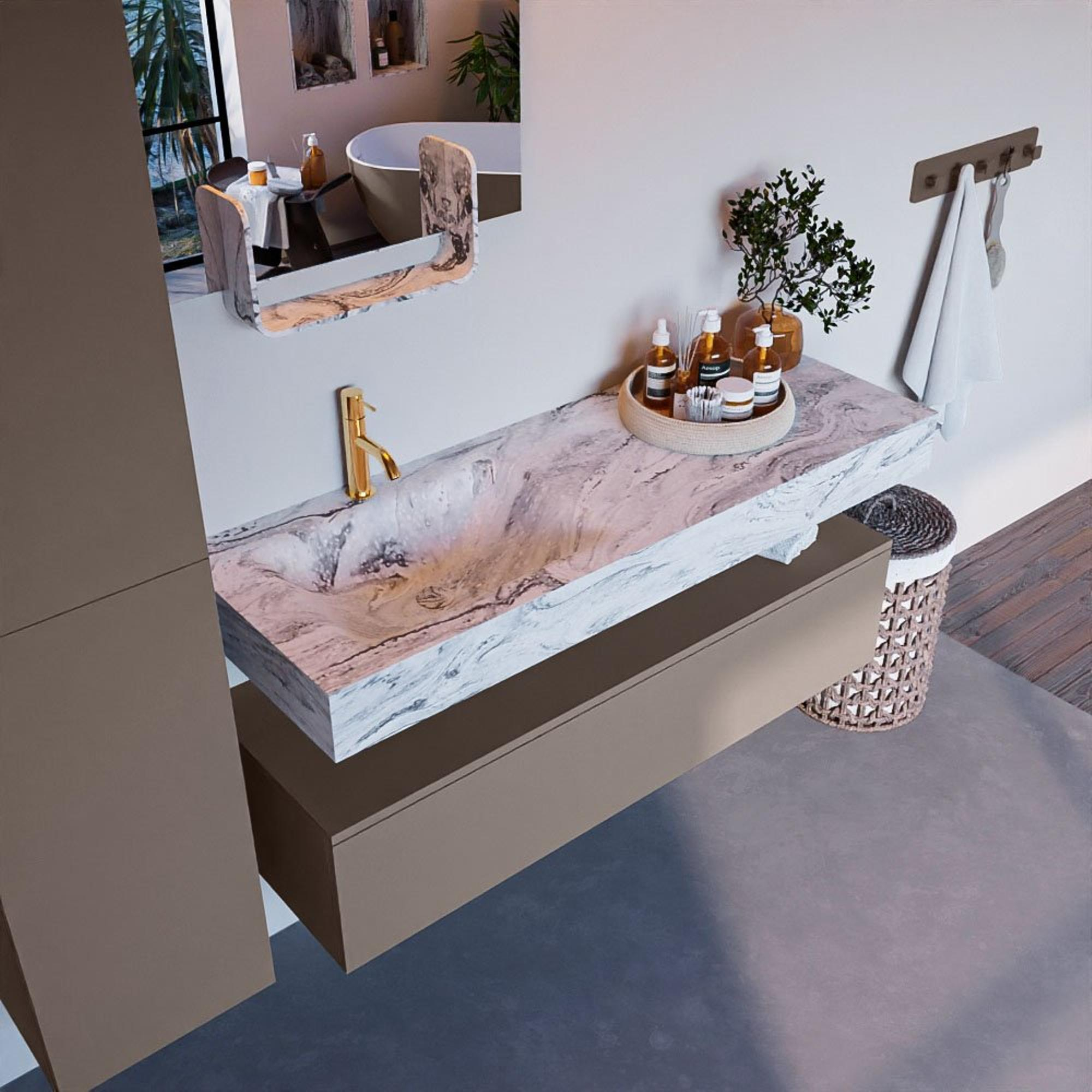 Creëer een fantastische elegante uitstraling in uw badkamer met de badkamermeubel set Alan DLUX. De schitterende badmeubel set ALAN-DLUX bestaat uit een vrij hangende wastafel met zachte organische lijnen van CORIAN in gemarmerd Solid Surface gecombineerd met de ALAN badmeubel. De badkamermeubel set ALAN-DLUX is geschikt voor iedere badkamer of deze nu klein of groot is. Om uw badkamer helemaal compleet te maken zijn ook diverse accessoires in deze marmers verkrijgbaar.