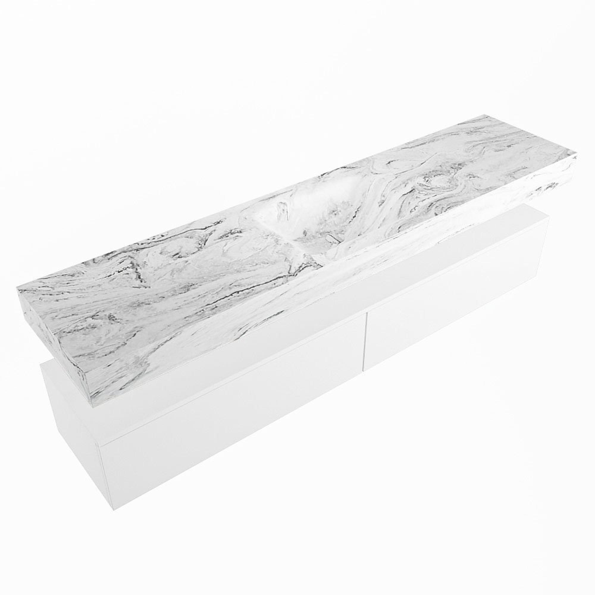 MONDIAZ ALAN - DLUX Badkamermeubelset - 200cm - onderkast - Talc - 2 lades - vrijhangende wastafel - wasbak midden - 1 kraangat - Glace