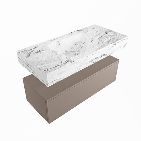 MONDIAZ ALAN - DLUX Badkamermeubelset - 100cm - onderkast - Smoke - 1 lade - vrijhangende wastafel - wasbak midden - 0 kraangaten - Glace