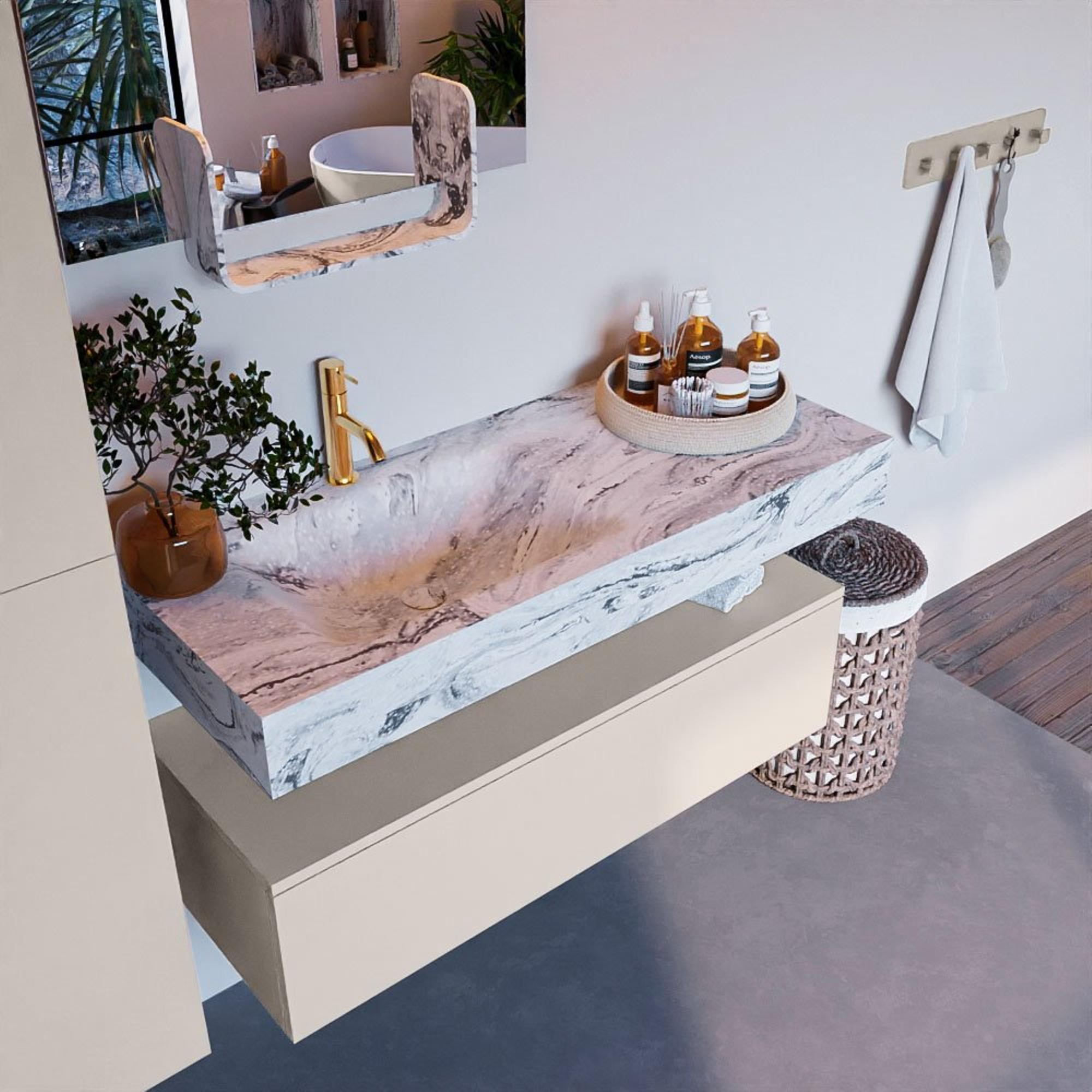 Creëer een fantastische elegante uitstraling in uw badkamer met de badkamermeubel set Alan DLUX. De schitterende badmeubel set ALAN-DLUX bestaat uit een vrij hangende wastafel met zachte organische lijnen van CORIAN in gemarmerd Solid Surface gecombineerd met de ALAN badmeubel. De badkamermeubel set ALAN-DLUX is geschikt voor iedere badkamer of deze nu klein of groot is. Om uw badkamer helemaal compleet te maken zijn ook diverse accessoires in deze marmers verkrijgbaar.