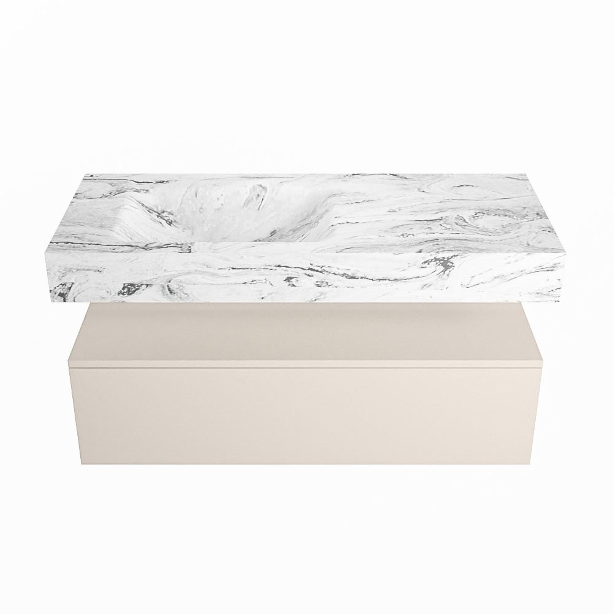 MONDIAZ ALAN - DLUX Badkamermeubelset - 110cm - onderkast - Linen - 1 lade - vrijhangende wastafel - wasbak links - 1 kraangat - Glace