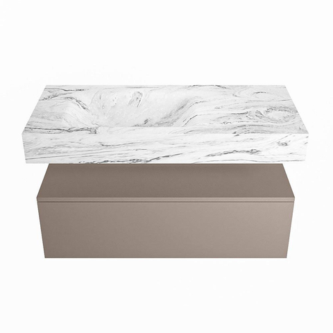 MONDIAZ ALAN - DLUX Badkamermeubelset - 100cm - onderkast - Smoke - 1 lade - vrijhangende wastafel - wasbak links - 1 kraangat - Glace
