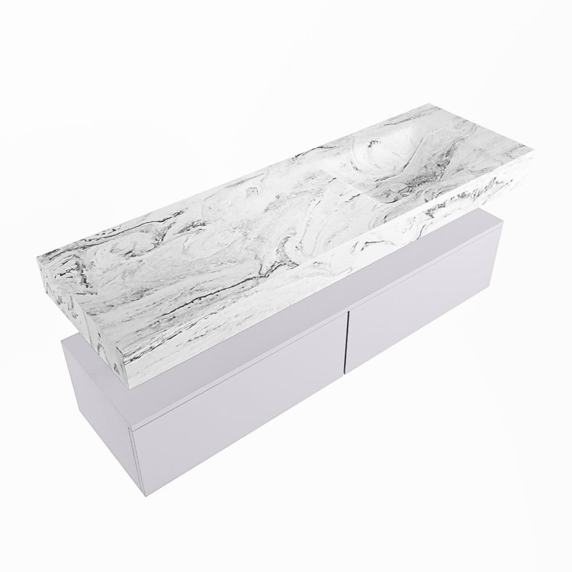MONDIAZ ALAN - DLUX Badkamermeubelset - 150cm - onderkast - Cale - 2 lades - vrijhangende wastafel - wasbak rechts - 0 kraangaten - Glace
