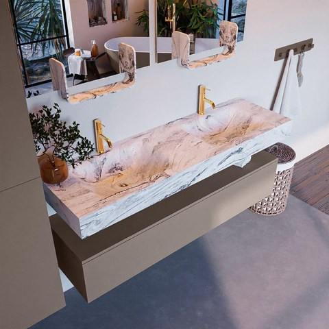 Creëer een fantastische elegante uitstraling in uw badkamer met de badkamermeubel set Alan DLUX. De schitterende badmeubel set ALAN-DLUX bestaat uit een vrij hangende wastafel met zachte organische lijnen van CORIAN in gemarmerd Solid Surface gecombineerd met de ALAN badmeubel. De badkamermeubel set ALAN-DLUX is geschikt voor iedere badkamer of deze nu klein of groot is. Om uw badkamer helemaal compleet te maken zijn ook diverse accessoires in deze marmers verkrijgbaar.