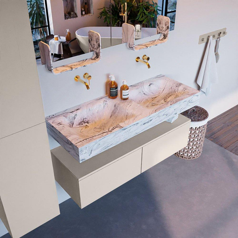 MONDIAZ ALAN - DLUX Badkamermeubelset - 120cm - onderkast - Linen - 2 lades - vrijhangende wastafel - 2 wasbakken - 0 kraangaten - Glace