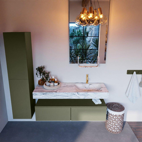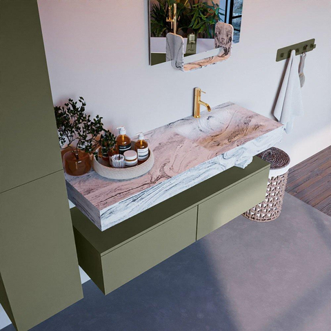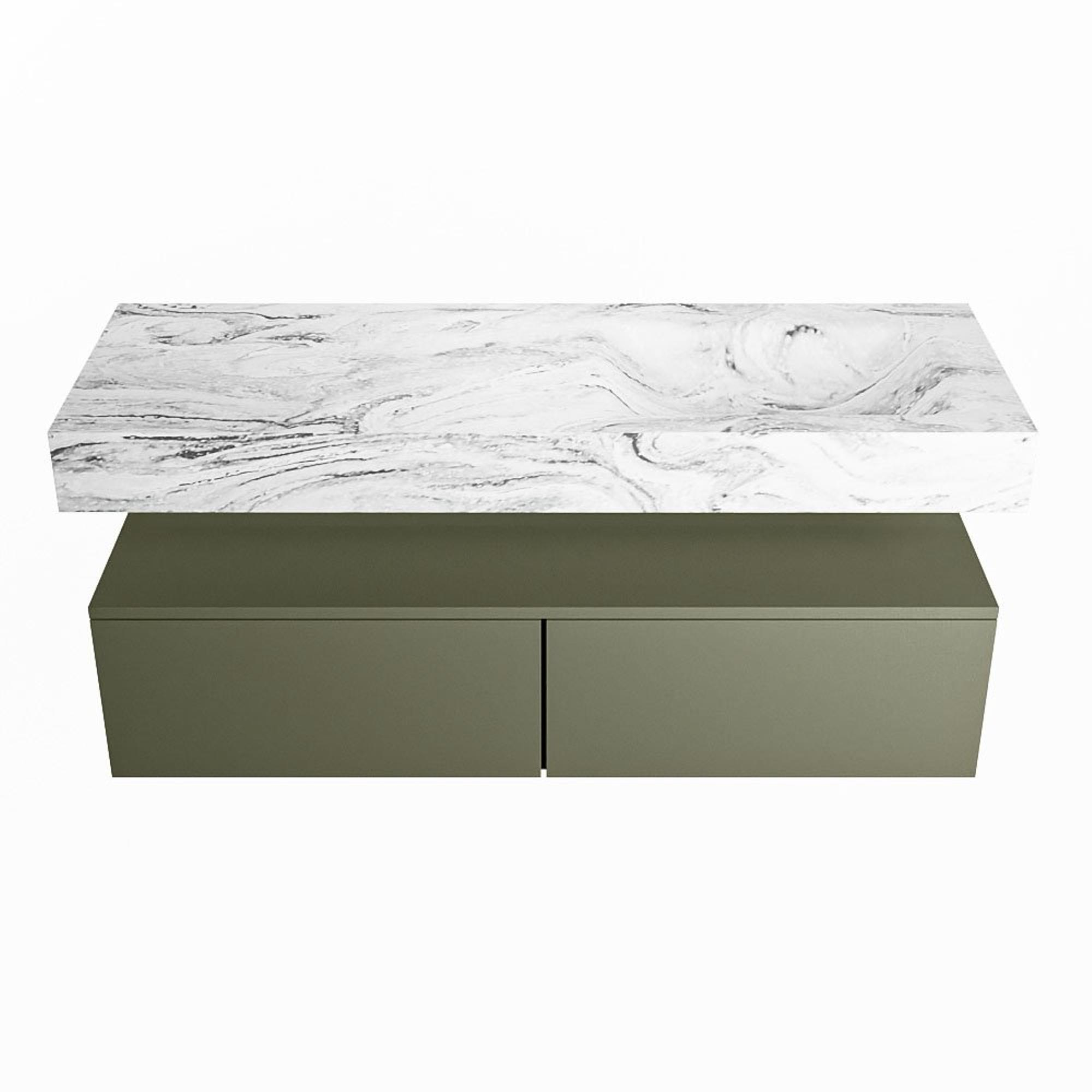 MONDIAZ ALAN - DLUX Badkamermeubelset - 130cm - onderkast - Army - 2 lades - vrijhangende wastafel - wasbak rechts - 1 kraangat - Glace