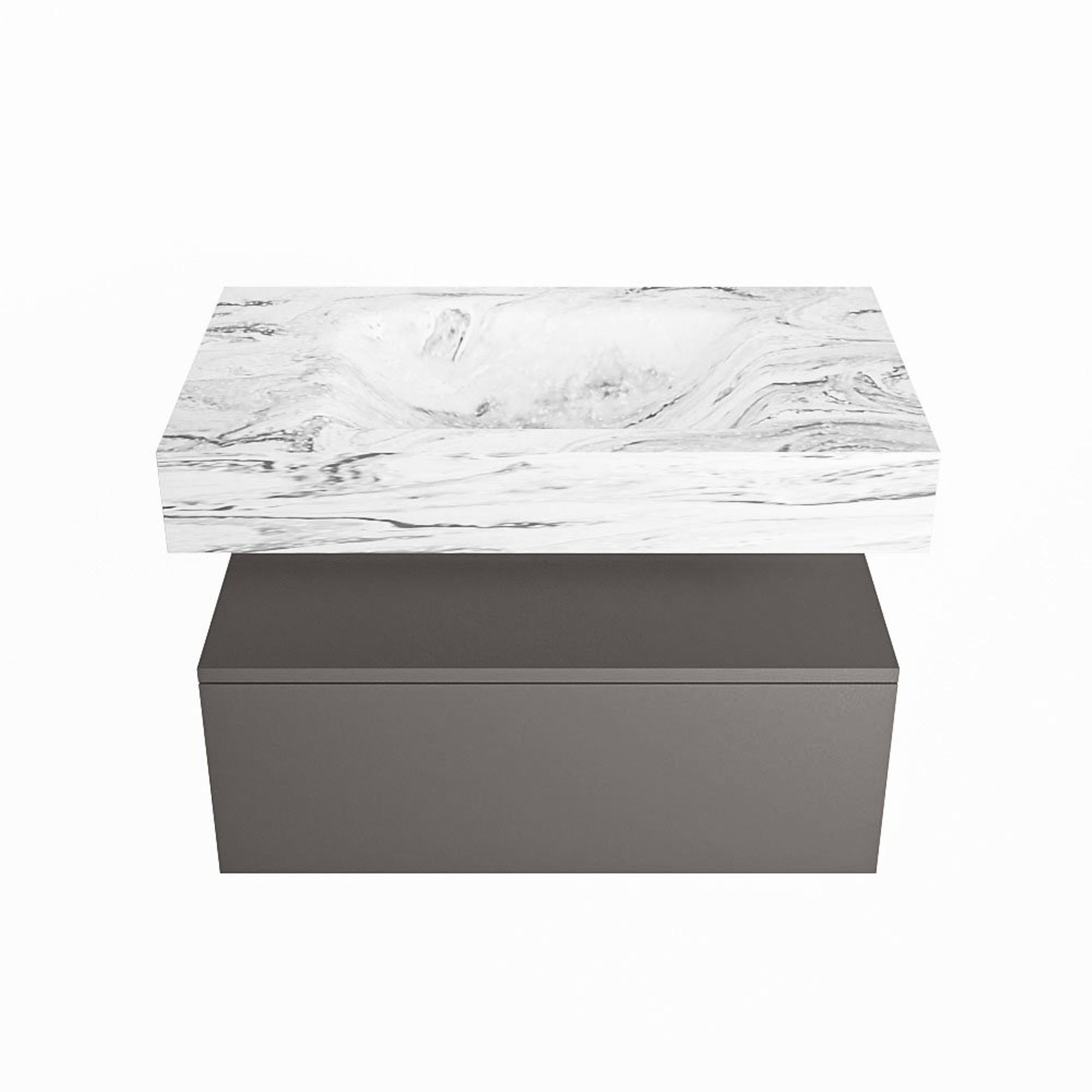 MONDIAZ ALAN - DLUX Badkamermeubelset - 80cm - onderkast - Dark grey - 1 lade - vrijhangende wastafel - wasbak midden - 1 kraangat - Glace