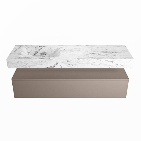 MONDIAZ ALAN - DLUX Badkamermeubelset - 150cm - onderkast - Smoke - 1 lade - vrijhangende wastafel - wasbak links - 1 kraangat - Glace